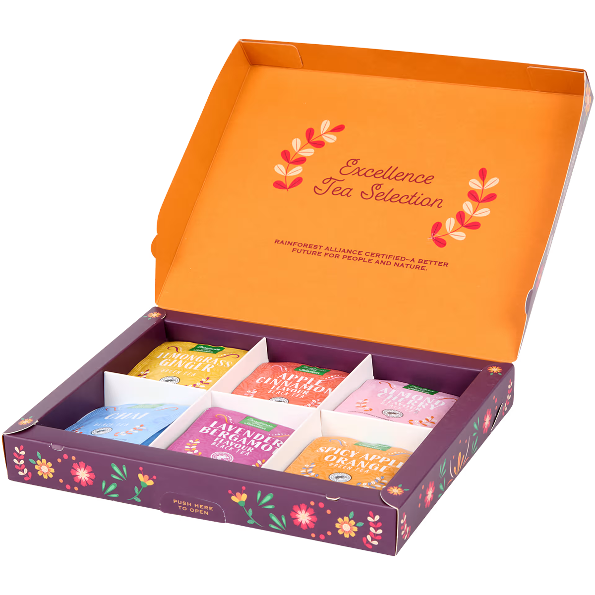 Scopri l’eleganza della Scatola di Selezione Tè di Becky, un raffinato cofanetto viola decorato con fiori, perfetto per gli amanti del tè Questa selezione include 24 filtri di tè nero e verde, con gusti assortiti che delizieranno il tuo palato!