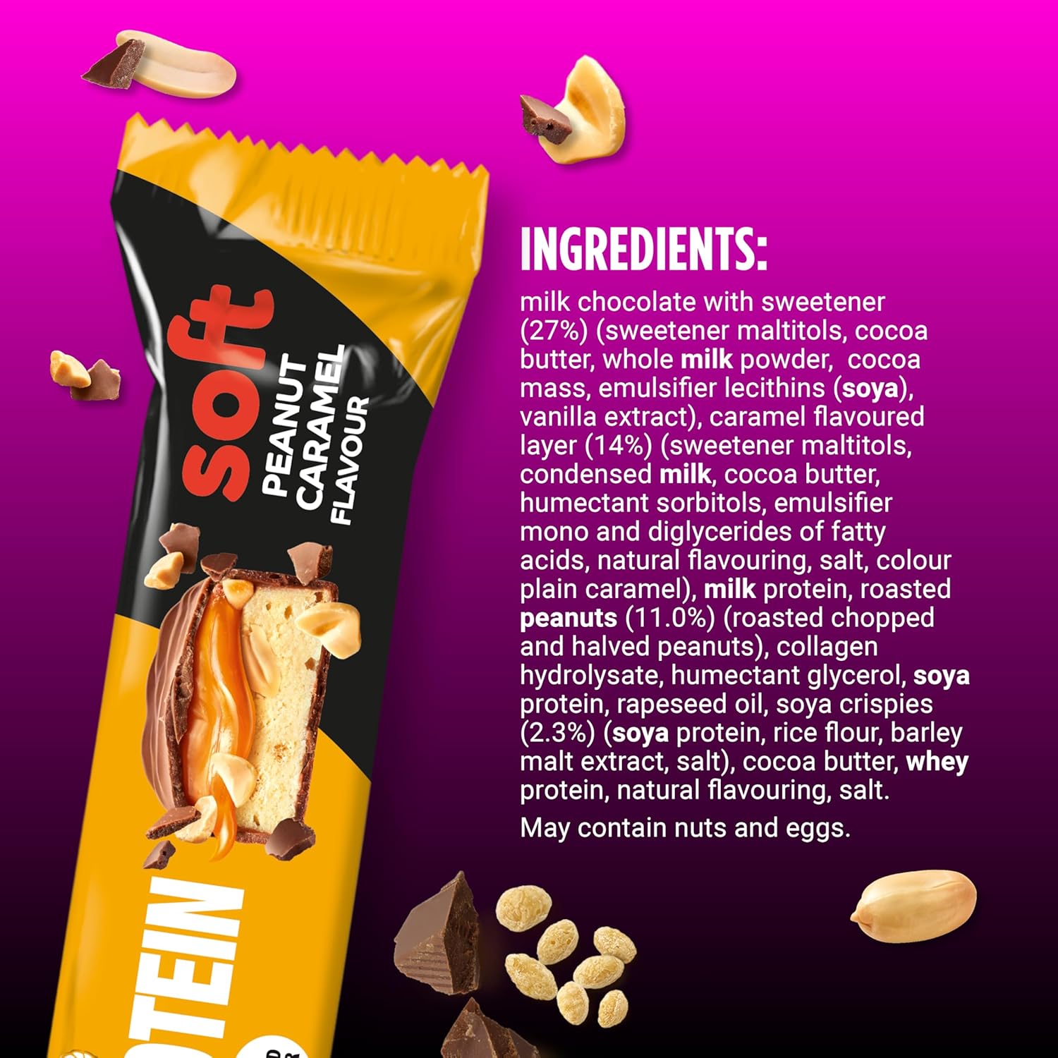 Ingredienti: Cioccolato al LATTE con edulcorante 27% (edulcorante (maltitolo), burro di cacao, LATTE intero in polvere, pasta di cacao, emulsionante (lecitine (SOIA)), estratto di vaniglia), proteine del LATTE, ARACHIDI tostate 11%, collagene idrolizzato bovino, edulcorante (maltitolo), umidificanti (glicerolo, sorbitolo), proteine di SOIA, LATTE intero condensato, olio di colza, fiocchi di SOIA (proteine di SOIA, farina di riso, estratto di malto d’ORZO, sale), burro di cacao, proteine del siero di LATTE, aromi naturali, emulsionante (mono- e digliceridi degli acidi grassi), sale, colorante (caramello semplice).