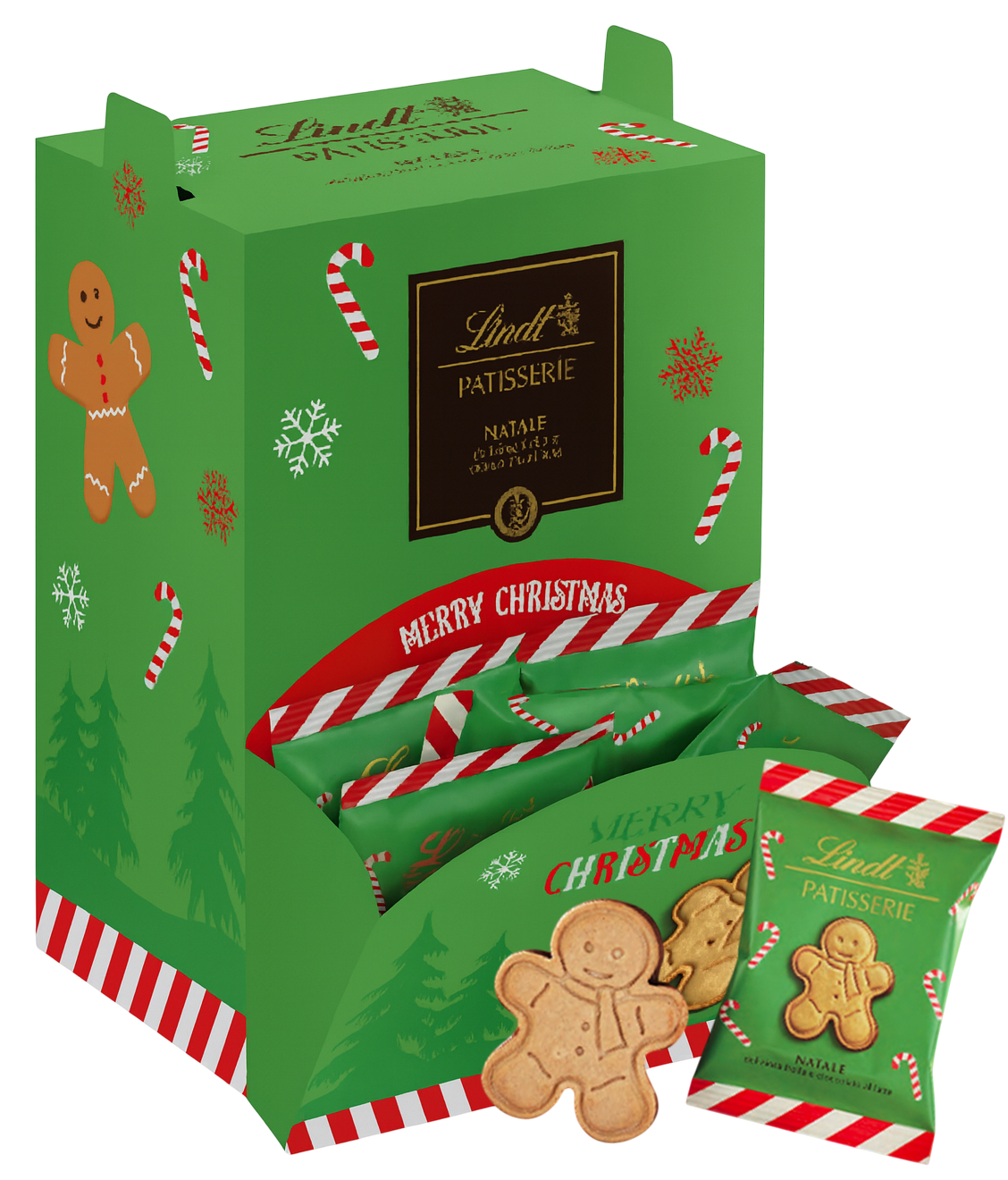 Scopri la magia del Natale con i deliziosi biscotti Patisserie Natale, degli squisiti frollini al cioccolato al latte a forma di omino di pan di zenzero. Ogni confezione contiene 50 biscotti da 16 grammi ciascuno, perfetti per creare dolci momenti durante le festività. Questi biscotti dalla forma tradizionale natalizia sono confezionati in un’elegante scatola verde decorata con bastoncini di zucchero e motivi natalizi.