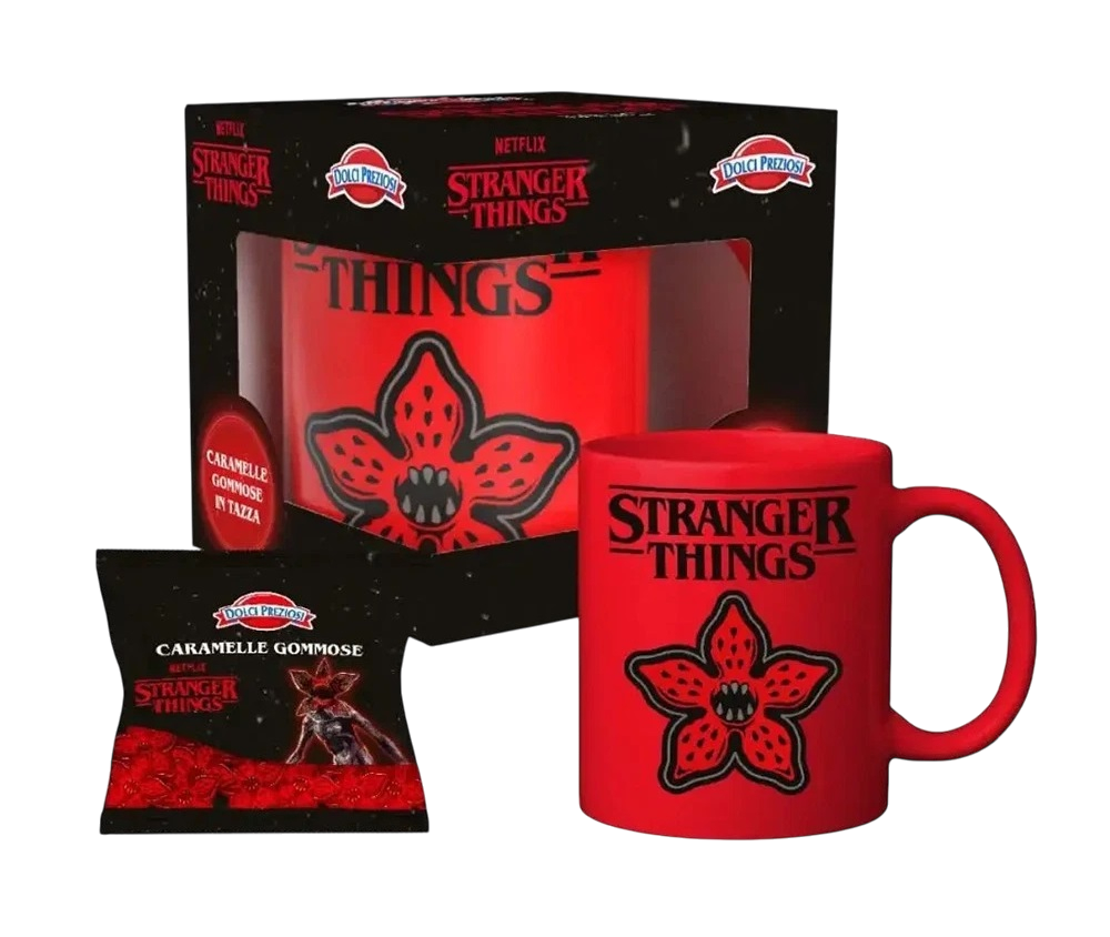 Immergiti nel mondo di Stranger Things con questa esclusiva tazza in edizione limitata di Dolci Preziosi. La tazza presenta un design accattivante in rosso brillante con il logo iconico della serie e un inquietante motivo floreale del Sottosopra in nero. Questo set speciale include non solo la tazza da collezione, ma anche una confezione di deliziose caramelle gommose da 50g per rendere ancora più dolce la tua esperienza di visione. La tazza è realizzata con materiali di qualità, perfetta per le tue bevande calde o fredde preferite mentre guardi la tua serie preferita. Il design distintivo con il logo Stranger Things e il simbolo del Demogorgone la rende un oggetto da collezione imperdibile per i veri fan della serie. Un regalo ideale per gli appassionati di Stranger Things o un’aggiunta perfetta alla tua collezione di merchandising. La confezione include la tazza in una elegante scatola nera con dettagli rossi che richiamano l’atmosfera della serie.