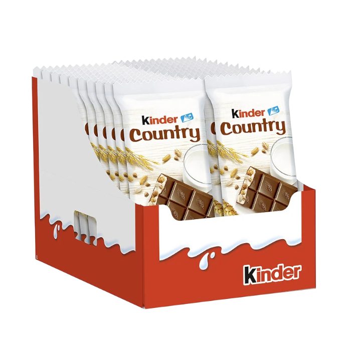 Scopri il delizioso Kinder Country, una barretta di cioccolato al latte racchiusa in una pratica confezione da 20×23,5g. Ogni morso è un viaggio nel gusto, con un perfetto equilibrio tra cioccolato cremoso e croccanti cereali, ideale per una pausa dolce o uno spuntino goloso.