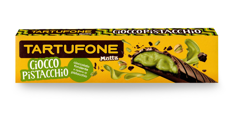 Cioccolato extra fondente (cacao: 50,5% min) (zucchero, pasta di cacao, burro di cacao, emulsionanti: lecitina di soia, aroma naturale di vaniglia). Ripieno 50% [grassi vegetali (cocco, palmisti, palma, in proporzione variabile), zucchero, pistacchi, latte scremato in polvere, cereali (farina di riso, zucchero, malto di frumento, destrosio, sale), siero di latte in polvere, emulsionanti: lecitina di soia, sale, aroma naturale di vaniglia, coloranti: E141]. Può contenere altra frutta a guscio, arachidi, altri cereali contenenti glutine