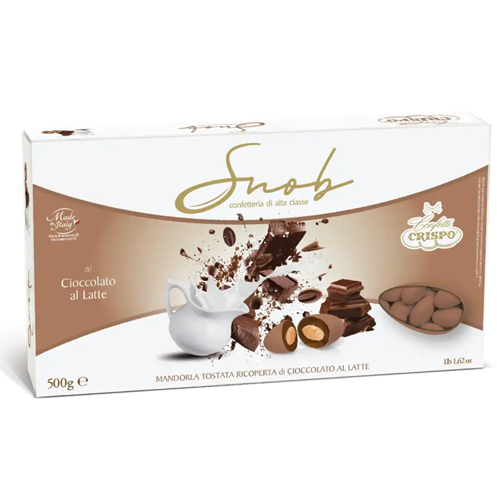 I Crispo Snob Confetti rappresentano l’eccellenza della confetteria italiana di alta classe. Questi raffinati confetti color terracotta racchiudono un cuore di cremoso cioccolato al latte, avvolto in un elegante guscio croccante che li rende irresistibili al palato!