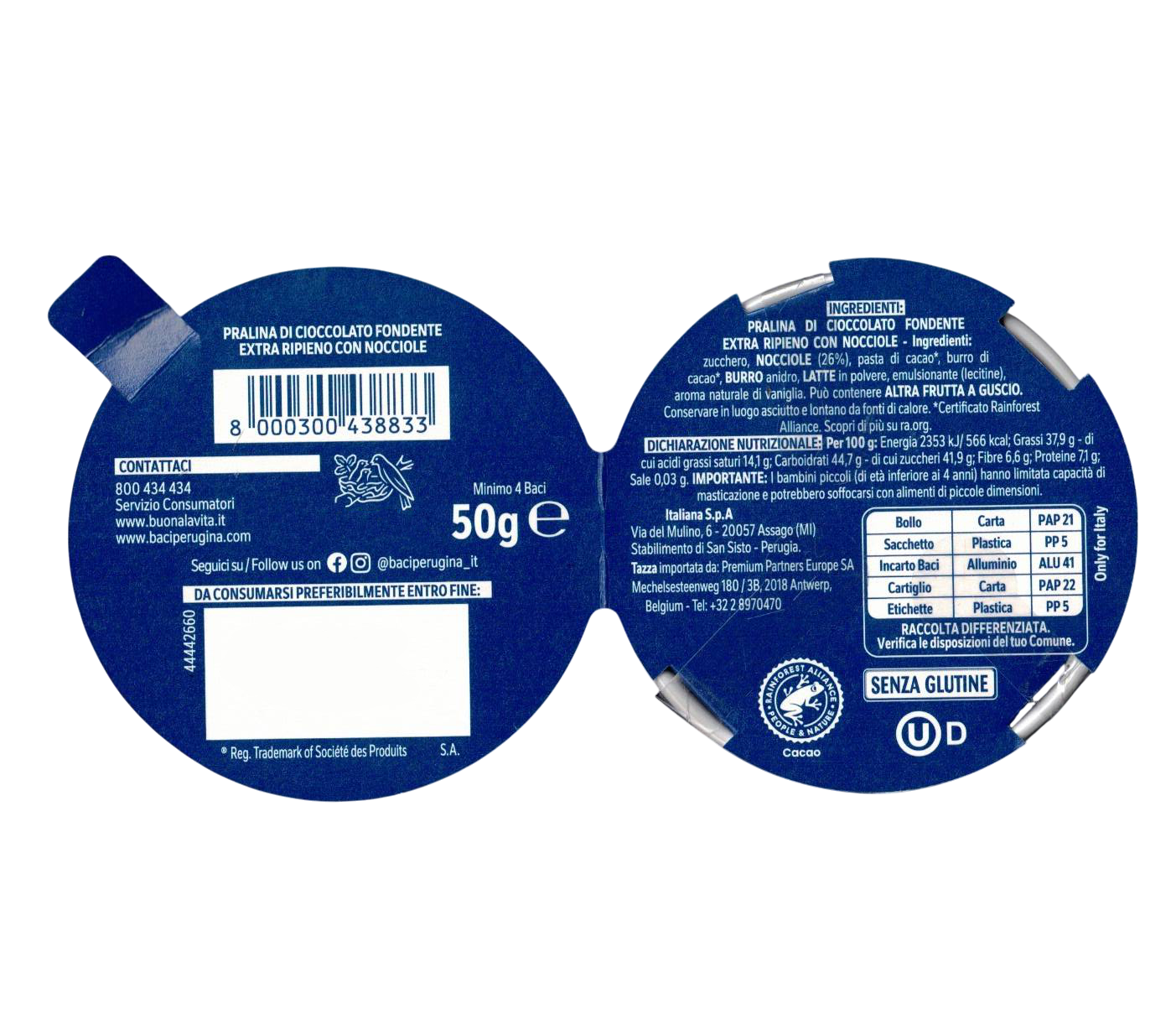 Ingredienti: Zucchero, nocciole (26%), pasta di cacao, burro di cacao, burro anidro, latte in polvere, emulsionante (lecitina), aroma naturale di vaniglia
