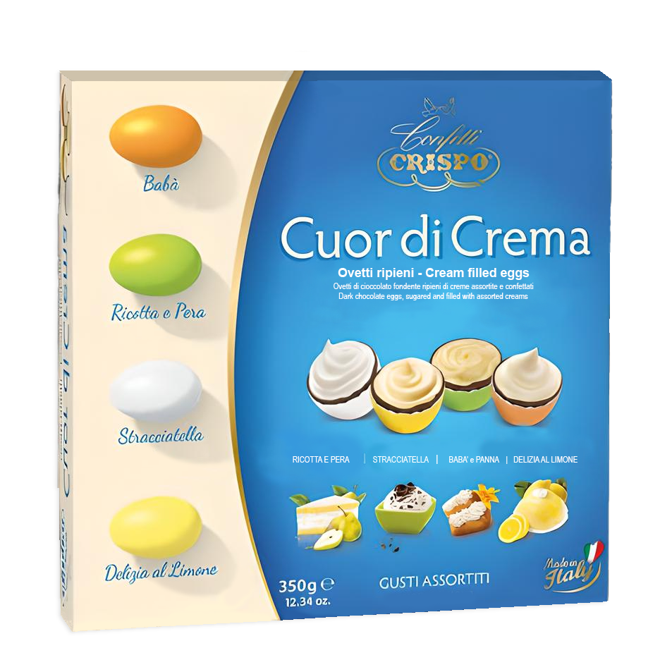 Questi ovetti ripieni, firmati Crispo, sono disponibili in gusti assortiti, offrendo una varietà che soddisfa ogni palato. Ogni confezione da 350g è un viaggio nel mondo dei sapori, perfetta per chi ama concedersi un momento di dolcezza.