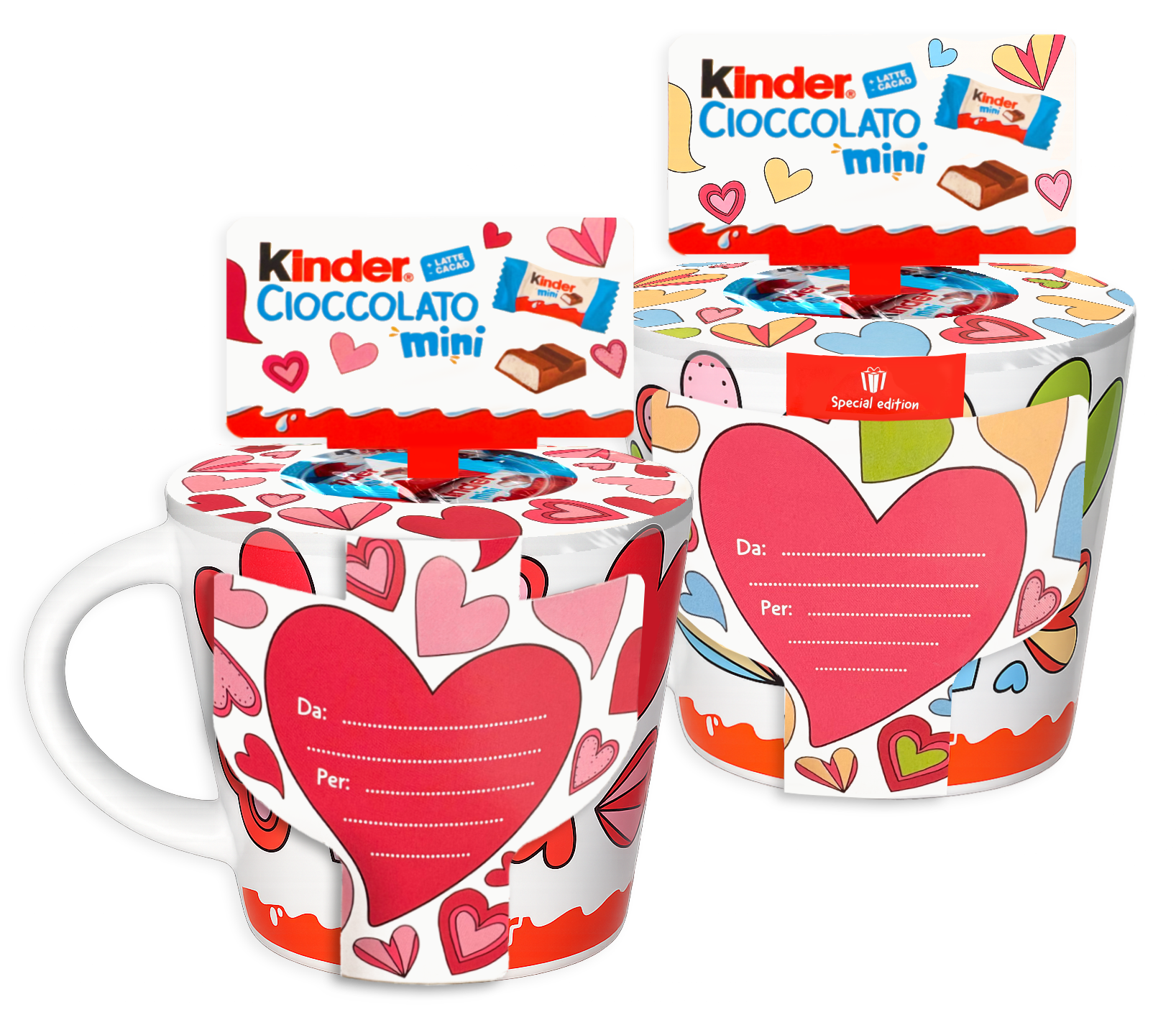 ⚠️L’inserzione si riferisce a un’unica tazza, disponibile in due grafiche romantiche differenti, entrambe decorate con cuori colorati e dettagli allegri. La grafica verrà spedita in modo casuale in base alla disponibilità di magazzino, rendendo ogni ordine una piccola sorpresa in più.