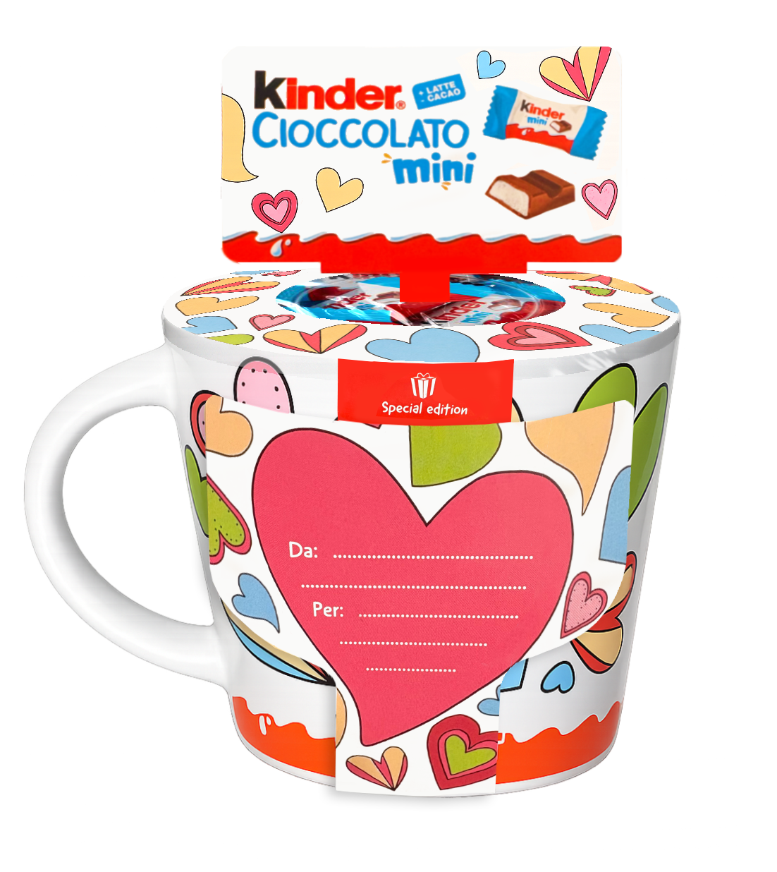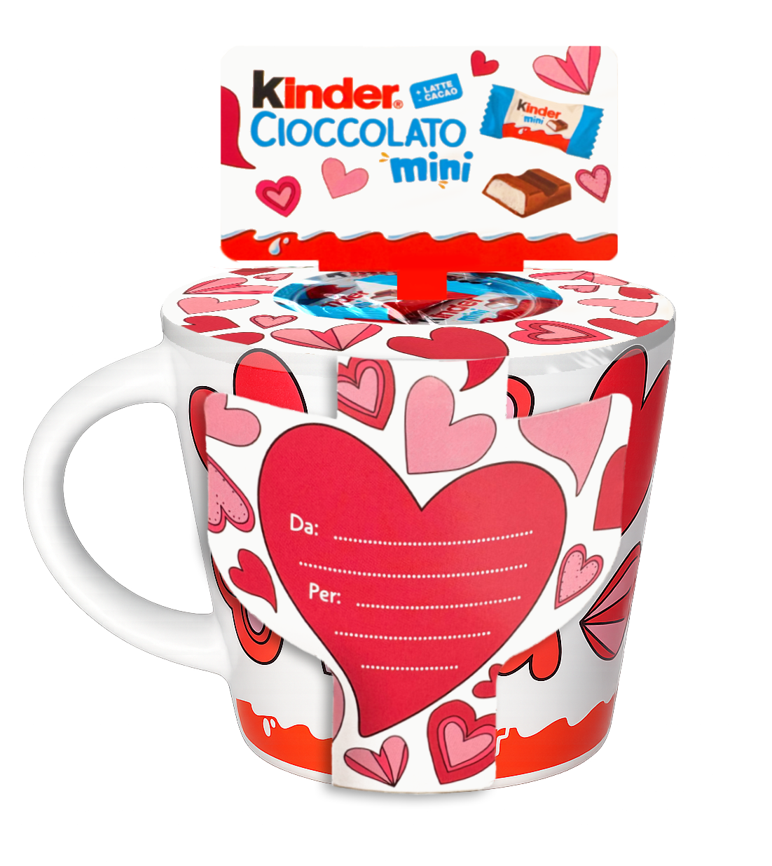La tazza è dotata di uno spazio dedicato a “Da” e “Per”, ideale per scrivere una dedica speciale e trasformare un semplice oggetto in un pensiero pieno di significato. All’interno ti aspetta una dolce coccola: mini cioccolatini al latte, perfetti da gustare durante una pausa rilassante o una colazione condivisa. È il regalo ideale per chi ama i gesti sinceri, le sorprese inaspettate e i momenti dolci. Perfetta per San Valentino, anniversari o semplicemente per dire “ti penso” con il sorriso