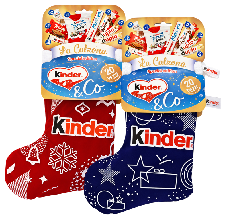 Porta la magia delle festività nella tua casa con la Kinder & Co. “La Calzona” Special Edition! Questa deliziosa calza dell’Epifania è disponibile in due eleganti colori – BLU o ROSSA – ed è ricca di prelibatezze Kinder che faranno felici grandi e piccini. Ogni calza contiene ben 20 pezzi di dolcetti assortiti per un totale di 416g di pura bontà: Kinder Cereali, Tronky Sandwich, Kinder Cioccolato, Schokobons, Kinder Maxi, Kinder Bueno e Duplo Riegel sia al latte che al cioccolato bianco.