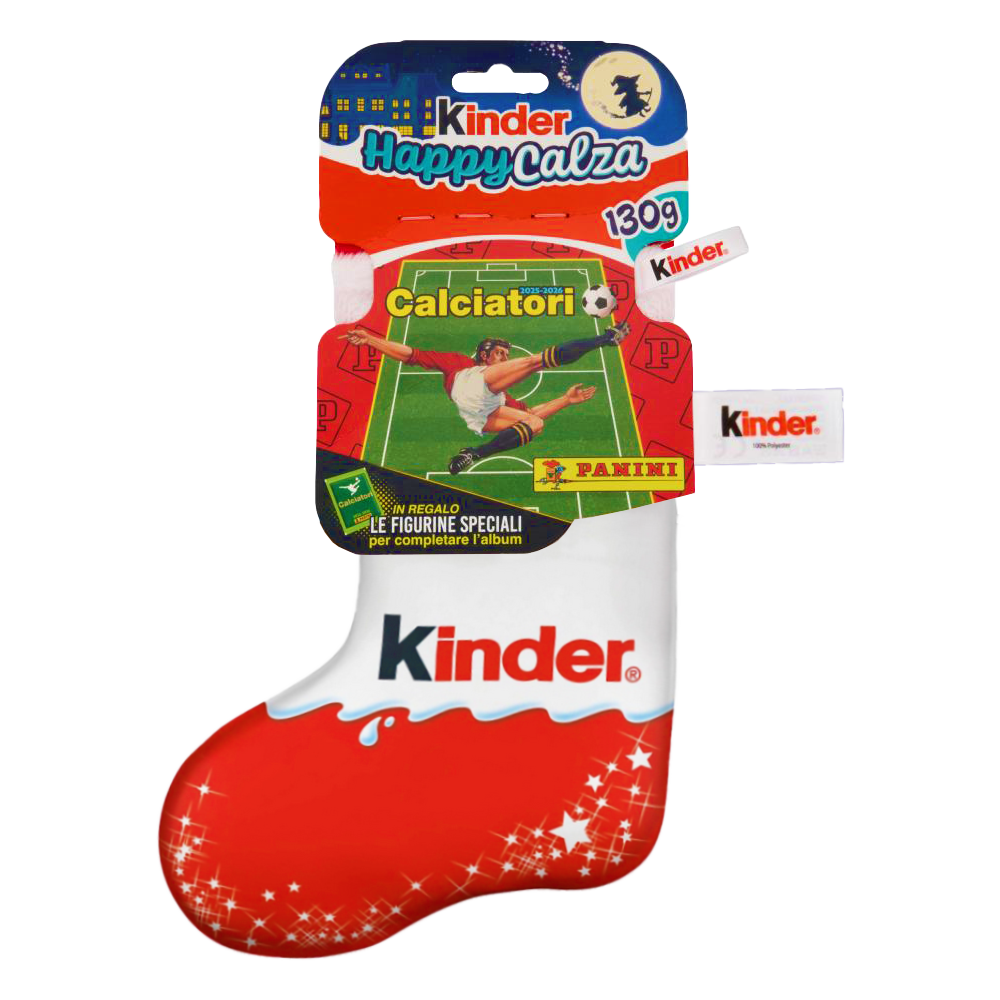 Scopri la magia del Kinder Happy Calza Calciatori Panini da 130g, un regalo perfetto per rendere la tua Befana ancora più dolce!