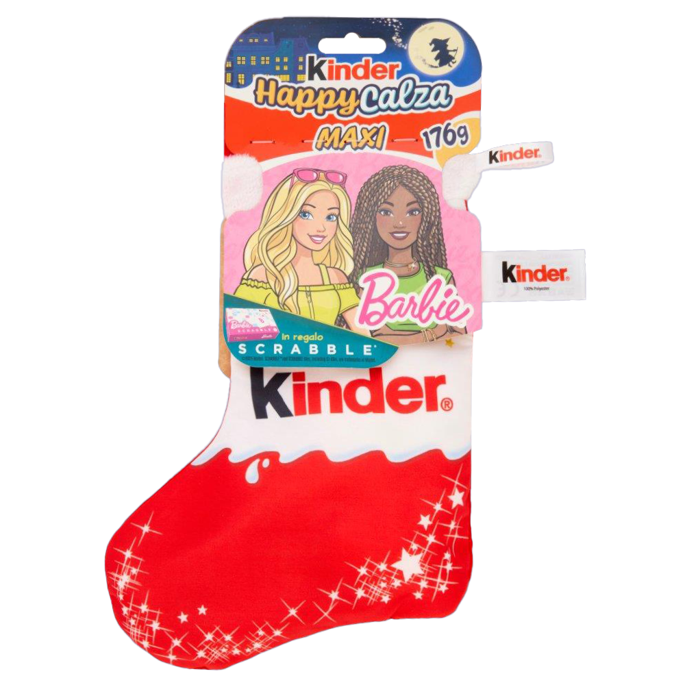 Scopri la magia del Natale con la Calza Maxi di Barbie Kinder Happy! Questa calza della Befana è un vero e proprio tesoro, ricca di delizie che faranno brillare gli occhi di grandi e piccini. All’interno troverai una selezione irresistibile di dolci Kinder, tra cui i famosi Kinder Cereali, il delizioso Kinder Bueno e il goloso Kinder Maxi, perfetti per soddisfare ogni voglia di dolcezza. Ma non è tutto! In regalo, troverai anche un fantastico Scrubble, un gioco divertente che stimola la creatività e il divertimento in famiglia. Con la Calza Maxi di Barbie, ogni momento diventa speciale e ogni morso è un’esperienza di gioia. Non perdere l’occasione di rendere il tuo Natale ancora più dolce e divertente!