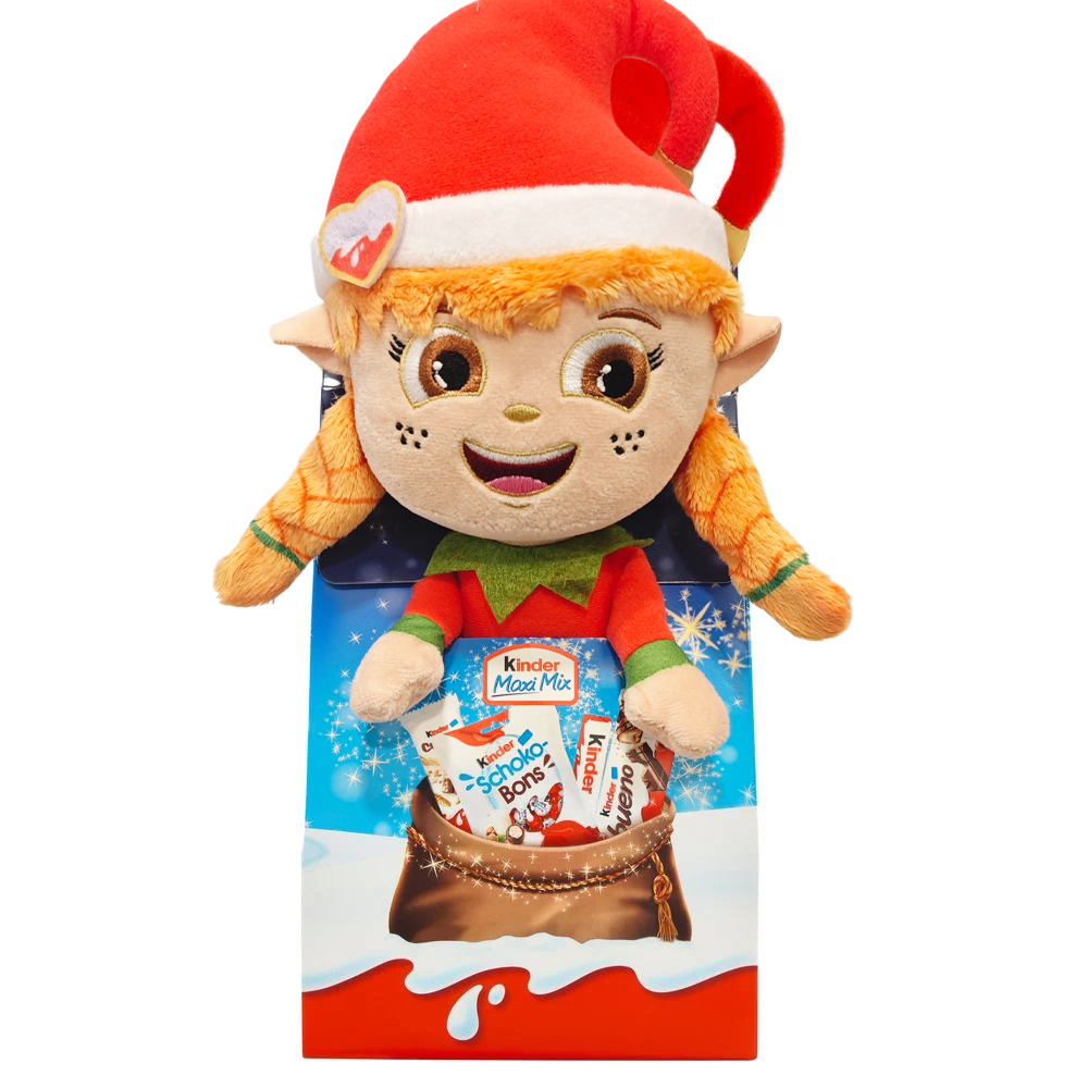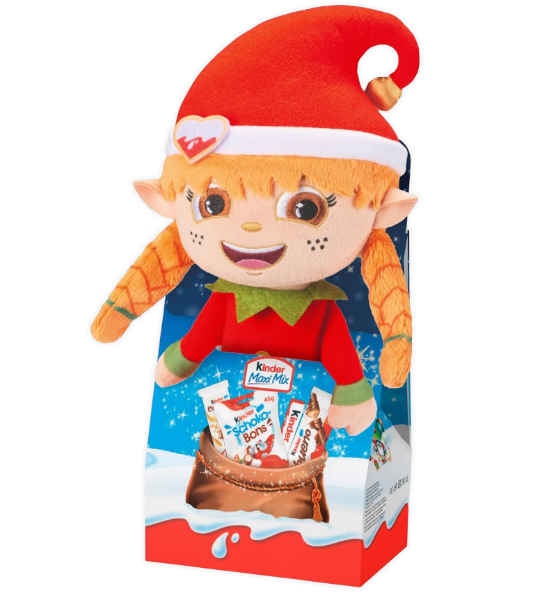 Porta la magia del Natale a casa tua con il Kinder Maxi Mix Peluche Natalizio ELFA! Questo adorabile peluche a forma di elfo natalizio con cappello rosso e dettagli verdi è accompagnato da una deliziosa selezione di cioccolatini Kinder. All’interno della confezione regalo troverai 133g di prelibatezze: Kinder Schokobons, Kinder Bueno, Kinder Maxi e Kinder Cereali.
