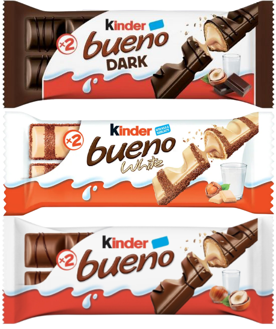 Ingredienti: latte in polvere, zucchero, cacao magro in polvere, burro di cacao, pasta di cacao, nocciole, farina di frumento, olio di semi (palma, girasole), fiocchi di cereali (frumento, orzo, mais), sciroppo di glucosio, grassi vegetali, emulsificanti (lecitine – soia), destrosio, siero di latte in polvere, proteine del latte, sale, aromi naturali, lievito, vanillina, burro, malto d’orzo, amido, latte condensato, olio di cocco, lattosio, cacao, croccante di nocciole