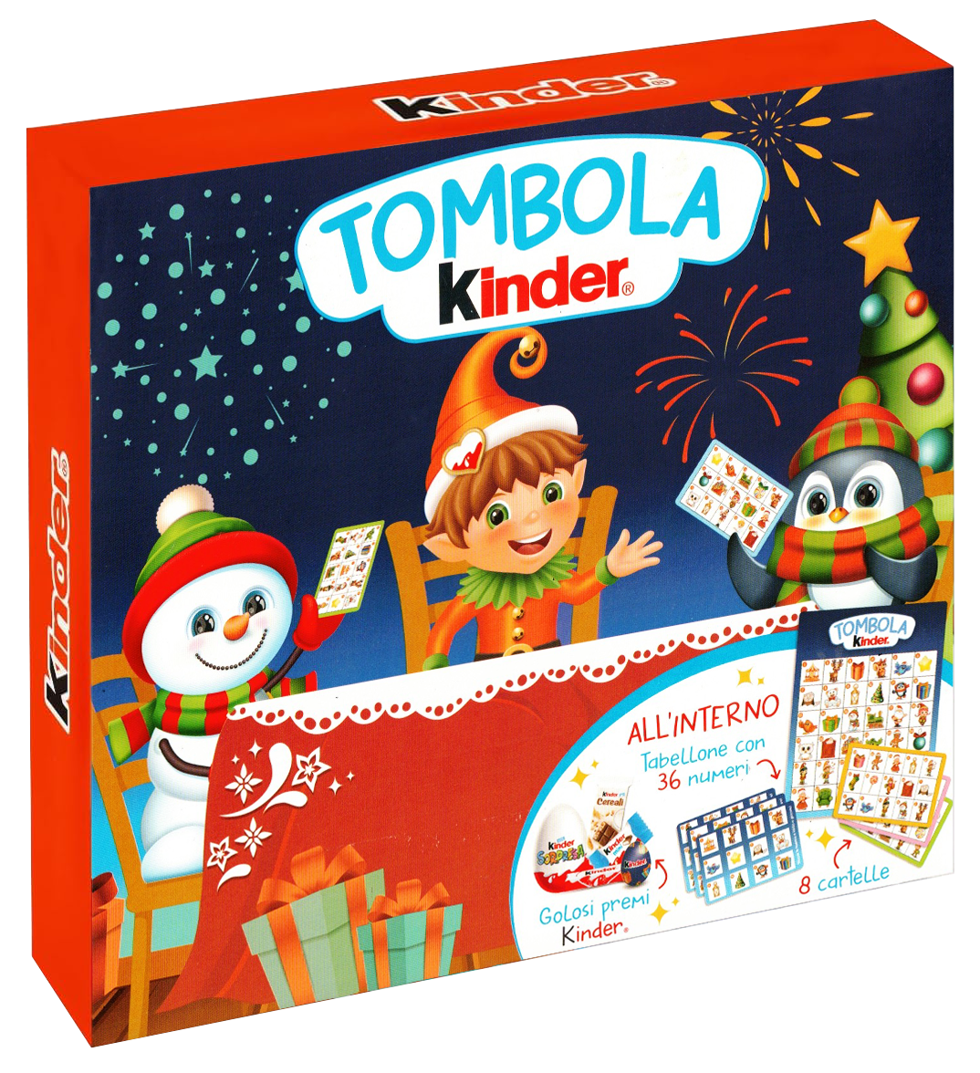Porta il divertimento natalizio a casa tua con la Tombola Kinder, un’esclusiva confezione che unisce il classico gioco della tombola ai deliziosi cioccolati Kinder. Questa confezione da 205g include una selezione di prelibatezze Kinder: i classici Kinder Cioccolato, i croccanti Kinder Cereali, le sorprendenti Kinder Sorpresa e altri gustosi mini cioccolatini. Il set comprende 8 cartelle da gioco e un tabellone completo con 36 tessere prestampate, perfetti per creare momenti di gioia e divertimento in famiglia. Ogni cartella è decorata con adorabili illustrazioni natalizie che rendono il gioco ancora più festoso. Un’idea regalo perfetta che combina il piacere del cioccolato Kinder con l’intrattenimento della tradizionale tombola, ideale per le festività o per qualsiasi momento di condivisione con amici e familiari.