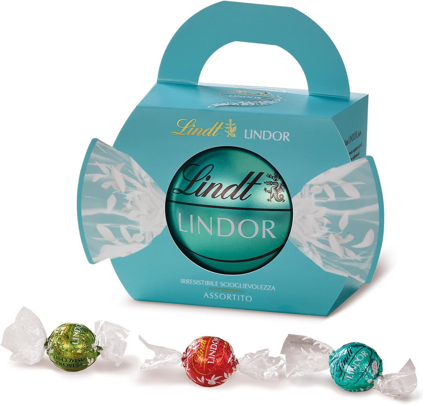 Scopri il lusso irresistibile dei cioccolatini LINDOR in questa elegante confezione regalo da 200g in edizione limitata. Una selezione assortita di prelibatezze che include i gusti pistacchio, latte e cocco, avvolti individualmente in lucenti involucri colorati. Ogni cioccolatino racchiude un cuore morbido e vellutato che si scioglie delicatamente in bocca, regalando un’esperienza di puro piacere. La distintiva scatola turchese con manico è perfetta come regalo raffinato o per concedersi un momento di dolce indulgenza. Questa collezione speciale combina le texture cremose caratteristiche di LINDOR con sapori irresistibili, creando un’armonia di gusti che delizierà anche i palati più esigenti.