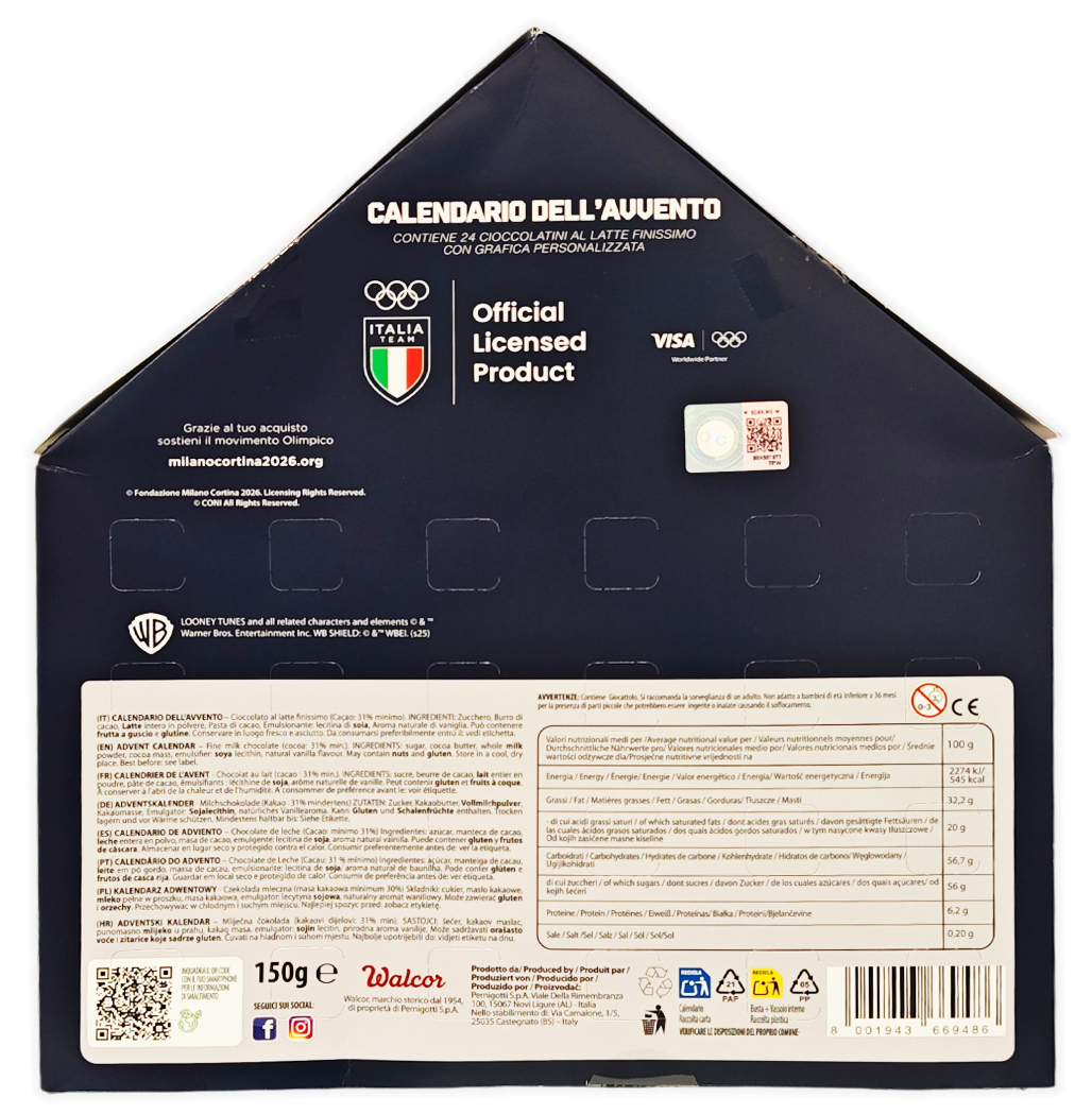 Celebra il magico periodo dell’Avvento con questo esclusivo calendario Looney Tunes, un prodotto ufficiale del Team Italia Milano-Cortina 2026! Ogni giorno di dicembre fino a Natale, scopri una deliziosa sorpresa con 24 squisiti cioccolatini al latte finissimo da 150g totali. Questo calendario dell’Avvento combina il divertimento dei personaggi Looney Tunes con la tradizione natalizia, offrendo un’esperienza unica per grandi e piccini.