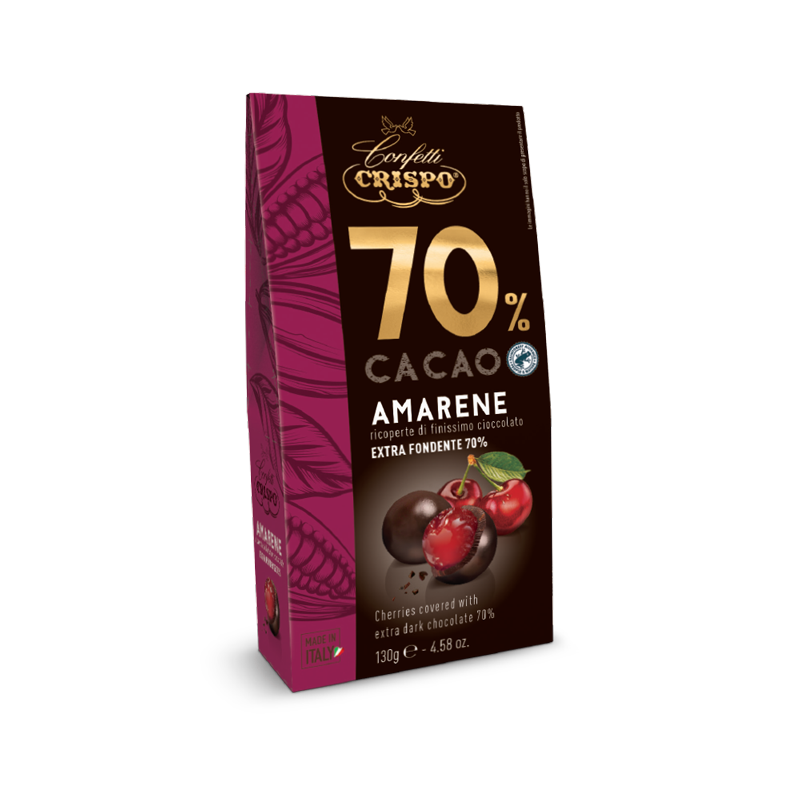 Scopri l’irresistibile combinazione delle amarene avvolte nel finissimo cioccolato fondente al 70% di cacao con i Confetti Crispo. Questa deliziosa specialità italiana da 130g offre un’esperienza gustativa unica dove la dolcezza si sposa perfettamente con l’intensità del cioccolato extra fondente di alta qualità. Ogni confetto è accuratamente preparato per garantire un equilibrio perfetto tra il ripieno fruttato e la copertura di cioccolato fondente!
