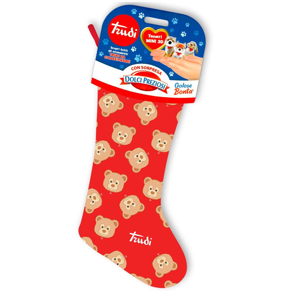 Scopri la magia dell’Epifania con la Calza Trudi di Dolci Preziosi! Questa deliziosa calza della befana da 190g è piena di golosità che faranno brillare gli occhi dei più piccoli. All’interno troverai barrette di cioccolato, soffici marshmallow, caramelle gommose a forma di orsetti e il tradizionale carbone di zucchero. Ma la sorpresa più bella sono i teneri animaletti 3D da collezione che i bambini adoreranno!