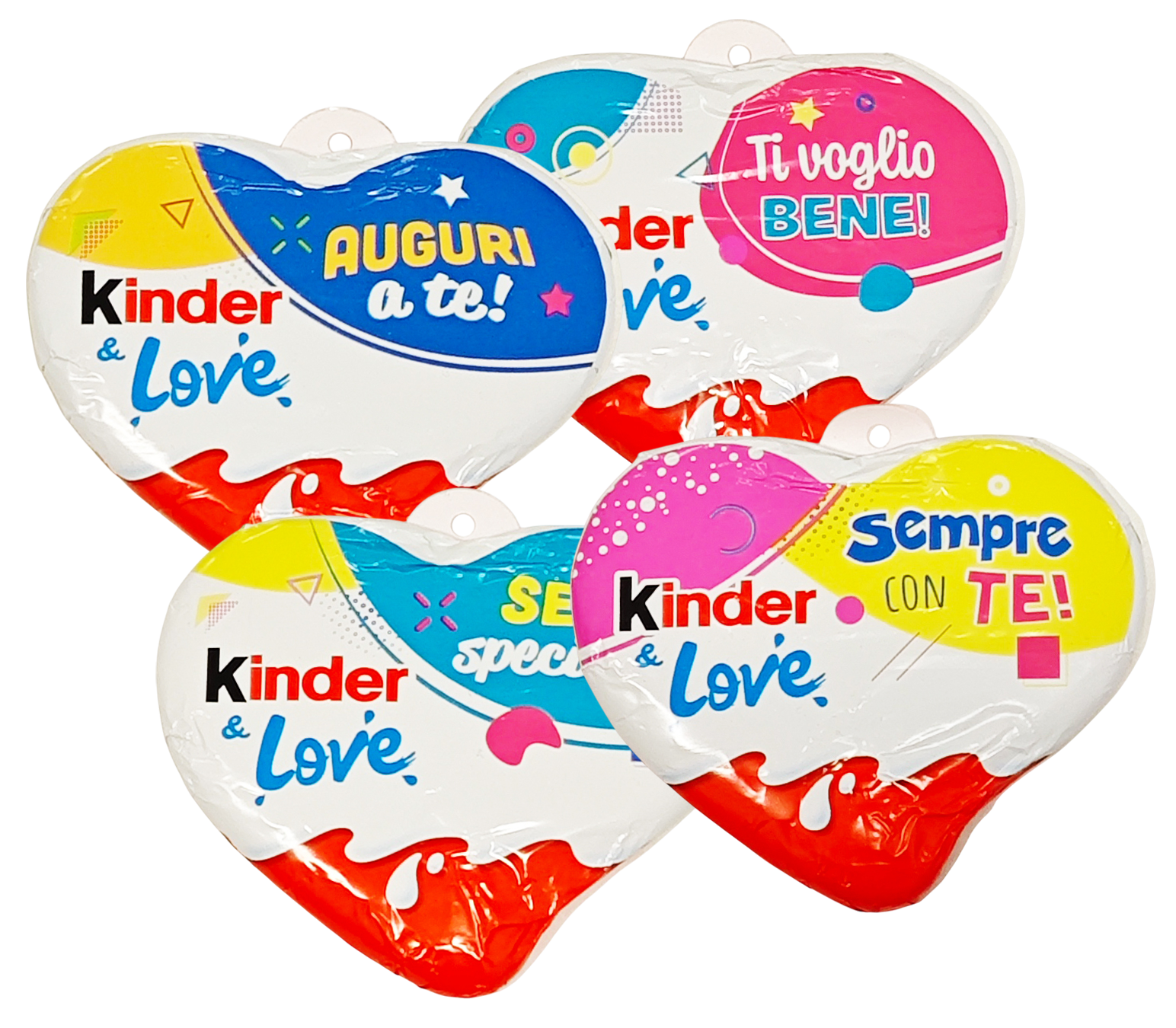 Scopri la dolcezza dei Kinder & Love, una deliziosa specialità di cioccolato al latte finissimo con un irresistibile ripieno al latte. Questa confezione speciale contiene 4 cuori di cioccolato da 37g ciascuno, decorati con messaggi colorati e festosi in diverse varianti. Perfetti per condividere un momento di dolcezza con chi ami o per fare un regalo originale e goloso. Ogni cuore è accuratamente realizzato con il rinomato cioccolato Kinder, che avvolge un morbido ripieno al latte dalla consistenza vellutata.