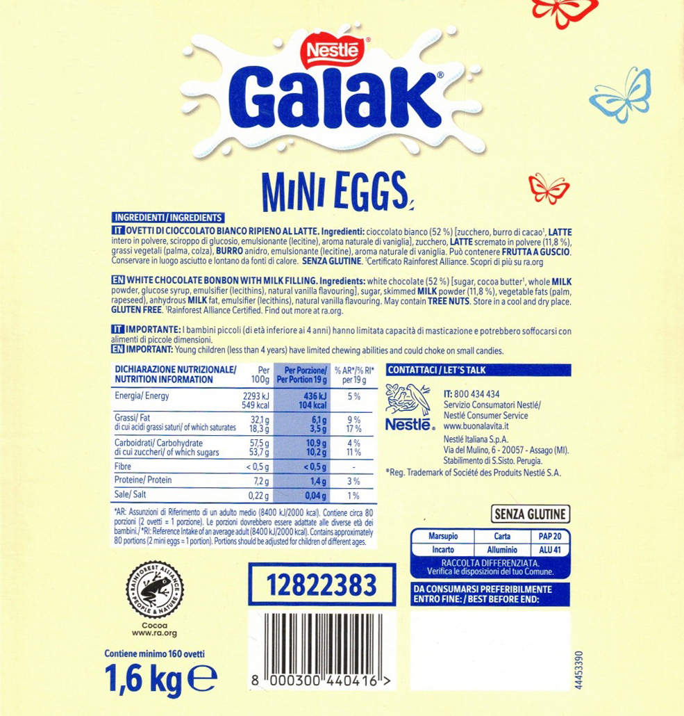 Se ami il gusto inconfondibile del cioccolato bianco Galak questo box espositore da 1,6 kg di mini ovetti Galak ripieni al latte è la soluzione perfetta per chi desidera un prodotto goloso da condividere in ogni occasione. All’interno della pratica confezione marsupio bocca di lupo sono presenti numerosi mini ovetti di delizioso cioccolato bianco Galak con morbido ripieno al latte, incartati singolarmente e pronti da gustare. Il formato è pensato per essere utilizzato sia in ambito domestico sia professionale ed è particolarmente adatto per bar, negozi, uffici, buffet, feste e celebrazioni pasquali. Il gusto iconico del cioccolato bianco Galak nasce dalla combinazione tra una copertura dolce e vellutata e un cuore cremoso al latte che rende ogni morso irresistibile per grandi e piccoli. Grazie alla dimensione mini questi ovetti sono perfetti per una pausa dolce veloce, per riempire ciotole di caramelle o per essere condivisi durante momenti di convivialità. La confezione da 1,6 kg contiene almeno 160 mini ovetti e offre una scorta generosa di dolcezza ideale per eventi, feste di compleanno, sweet table o per la vendita al dettaglio. La scatola è progettata per trasformarsi facilmente in un espositore da banco pratico e ordinato, permettendo di presentare il prodotto in modo professionale e invitante. I Galak Mini Eggs rappresentano una scelta perfetta per chi cerca un prodotto di qualità firmato Nestlé, capace di unire gusto, praticità e versatilità in un unico formato pensato per la condivisione.