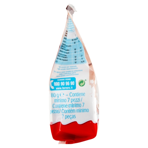 Cioccolato finissimo al LATTE 52,5% (zucchero, LATTE intero in polvere, burro di cacao, pasta di cacao, emulsionanti: lecitine (SOIA); vanillina), zucchero, olio di palma, NOCCIOLE (8%), LATTE scremato in polvere (6,5%), LATTE intero in polvere (4,5%), Farina di FRUMENTO, cacao magro, emulsionanti: lecitine (SOIA), agente lievitante (carbonato acido di sodio), vanillina, sale. Sul totale: latte scremato e latte intero in polvere 22%, cacao 18%. Con cioccolato solo puro cacao.