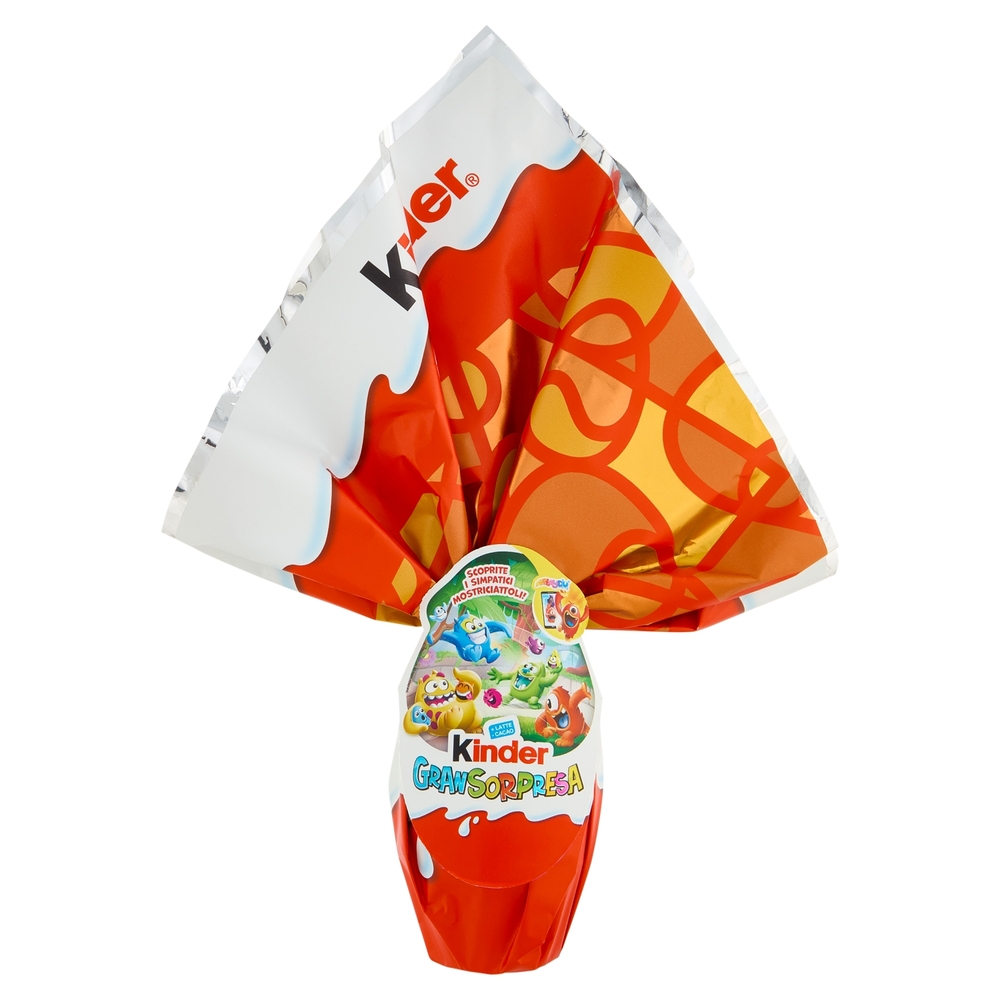Kinder GranSorpresa Mostriciattoli Mini 41g è un ovetto di cioccolato finissimo al latte con sorpresa a tema Mostriciattoli. Perfetto come piccolo regalo o pensiero goloso per bambini, unisce la qualità Kinder al divertimento della sorpresa.