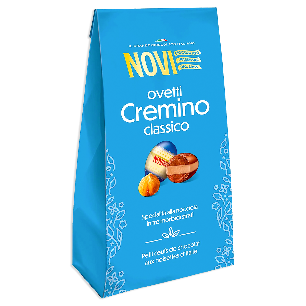 Scopri il delizioso Novi Ovetti Cremino Classico, una specialità alla nocciola che conquista il palato con tre morbidi strati, perfettamente bilanciati per un’esperienza di gusto unica. Ogni confezione da 160g è completamente senza glutine, rendendola ideale per chi cerca un dolce raffinato e adatto a tutte le esigenze alimentari. Regalati un momento di dolcezza con questi cioccolatini artigianali, perfetti per ogni occasione.