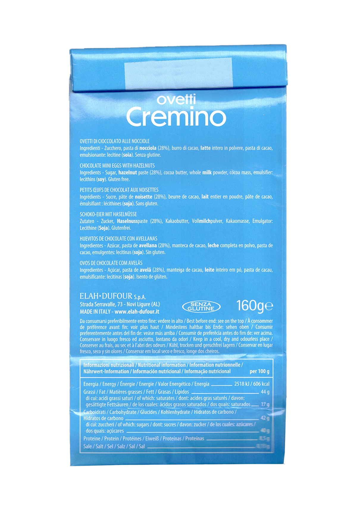 Scopri il delizioso Novi Ovetti Cremino Classico, una specialità alla nocciola che conquista il palato con tre morbidi strati, perfettamente bilanciati per un’esperienza di gusto unica. Ogni confezione da 160g è completamente senza glutine, rendendola ideale per chi cerca un dolce raffinato e adatto a tutte le esigenze alimentari!