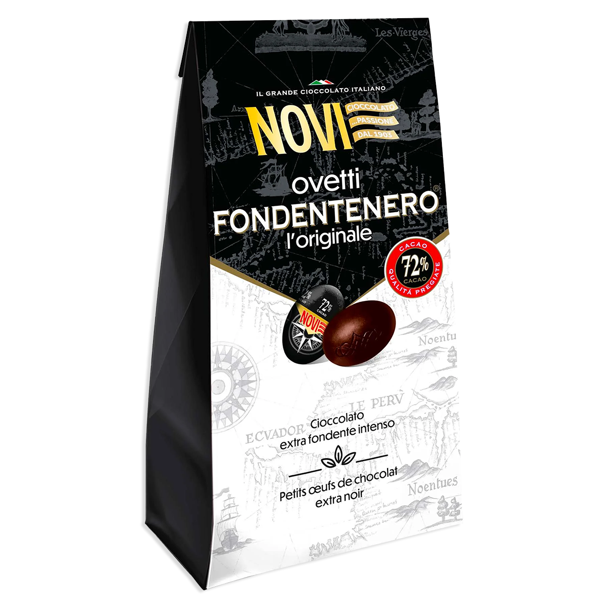 Il celebre Fondentenero Novi, unico nella sua ricetta, entra nella Pasqua degli italiani come ideale accompagnamento della vostra Festività. Scopri il piacere intenso dei Novi Ovetti Fondentenero Cioccolato Extra Fondente Intenso da 160g!