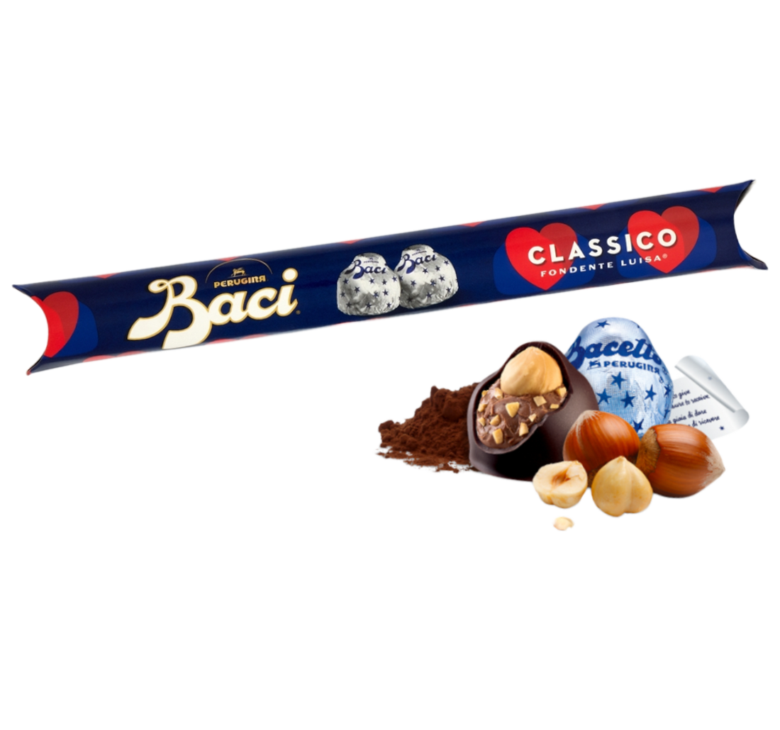 Scopri il delizioso mondo dei Baci Perugina, un’esperienza di gusto che unisce il cioccolato fondente extra Luisa a un cuore morbido di gianduia e una nocciola intera, il tutto avvolto in un finissimo strato di cioccolato fondente.