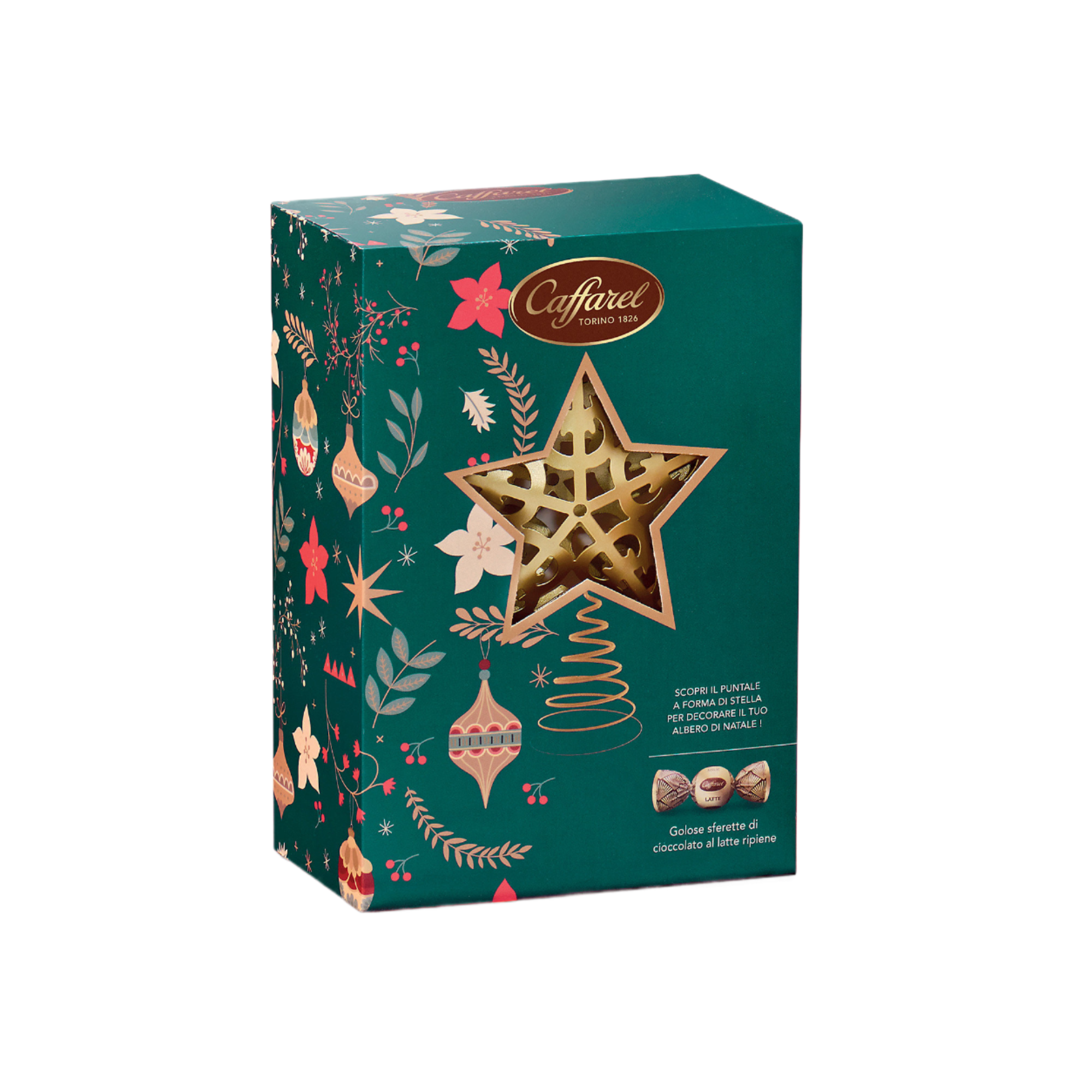 Scopri il Puntale di Natale a Forma di Stella, un delizioso elemento decorativo per il tuo albero di Natale! Questa splendida stella dorata non solo illumina la tua festa, ma è anche accompagnata da una confezione regalo contenente sfere di cioccolato al latte e al gusto caramello Caffarel da 180g. Un regalo perfetto per deliziare amici e familiari, rendendo il tuo Natale ancora più dolce e festoso!