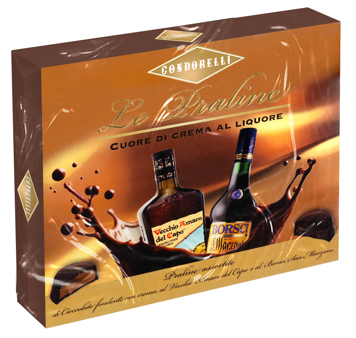 Scopri l’eleganza e il gusto raffinato delle praline Condorelli, una confezione da 240g che racchiude un assortimento di delizie al cioccolato fondente. Ogni pralina è un piccolo capolavoro, farcita con una crema al liquore che esalta i sapori autentici del Vecchio Amaro del Capo e del Borsci San Marzano. Perfette per un regalo speciale o per concederti un momento di dolcezza, queste praline sono avvolte in un packaging elegante che le rende ideali per ogni occasione. Lasciati conquistare dalla loro consistenza cremosa e dal sapore avvolgente, un’esperienza di gusto che saprà sorprendere anche i palati più esigenti. Non perdere l’opportunità di assaporare queste prelibatezze, un vero e proprio viaggio nel mondo del cioccolato e dei liquori artigianali!