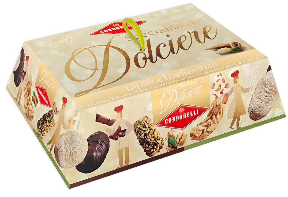 Scopri l’eleganza della pasticceria siciliana con questa raffinata confezione Condorelli da 450g. Un assortimento prelibato che include deliziosi dolcetti alle mandorle, al pistacchio e al cioccolato, disponibili nelle varianti Tradizionali e Lapilli. Ogni pasticcino è preparato secondo ricette tradizionali, combinando ingredienti selezionati come mandorle, pistacchi e cioccolato di alta qualità. La confezione elegante con laccio decorativo la rende perfetta come regalo raffinato o per occasioni speciali. I Lapilli offrono un’esperienza gustativa unica con il loro rivestimento di cioccolato, mentre i Tradizionali esaltano il sapore autentico della frutta secca. Conservare in luogo fresco e asciutto per mantenere intatta la fragranza di questi piccoli capolavori di pasticceria. Senza glutine, questi dolcetti sono ideali per chi cerca un’esperienza gastronomica di livello superiore, con circa 110-120 calorie per porzione.