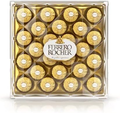 Ferrero Rocher, inconfodibile piacere: Avvolta dall’inconfondibile incarto dorato si cela una deliziosa combinazione di consistenze e sapori. Tostiamo solo le nocciole migliori, le tuffiamo in una morbida crema di cioccolato e le ricopriamo con un guscio croccante di wafer e granella di nocciola. Da sempre le specialità Ferrero Rocher rendono straordinari i nostri momenti con le persone che amiamo. Avvolta dall’inconfondibile incarto dorato si cela una deliziosa combinazione di consistenze e sapori. Tostiamo solo le nocciole migliori, le tuffiamo in una morbida crema di cioccolato e le ricopriamo con un guscio croccante di wafer e granella di nocciola. Da sempre le specialità Ferrero Rocher rendono straordinari i nostri momenti con le persone che amiamo. Scopri una deliziosa armonia di nocciole tostate avvolte da delicato cioccolato e wafer croccante. L’iconica confezione trasparente di 24 Ferrero Rocher renderà straordinario ogni momento, da assaporare da solo o in compagnia. Perfetto per Un momento per me o da condividere con le persone care