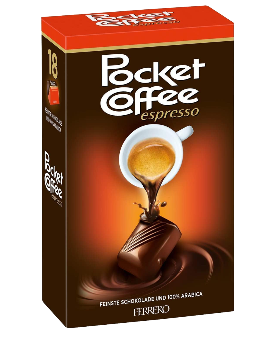 Scopri l’irresistibile Pocket Coffee Espresso, una deliziosa fusione di cioccolato finissimo e vero caffè espresso liquido. Ogni confezione contiene 18 praline di cioccolato extra riempite con autentico caffè 100% Arabica, creando un’esperienza di gusto unica e lussuosa. Realizzato con maestria da Ferrero, ogni cioccolatino racchiude il perfetto equilibrio tra il ricco aroma del caffè e la dolcezza del cioccolato al latte.