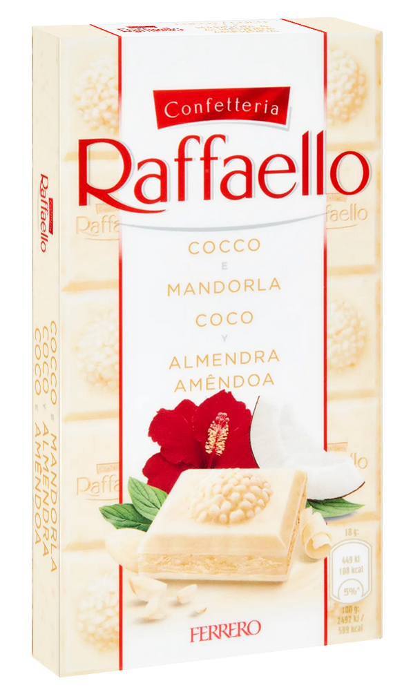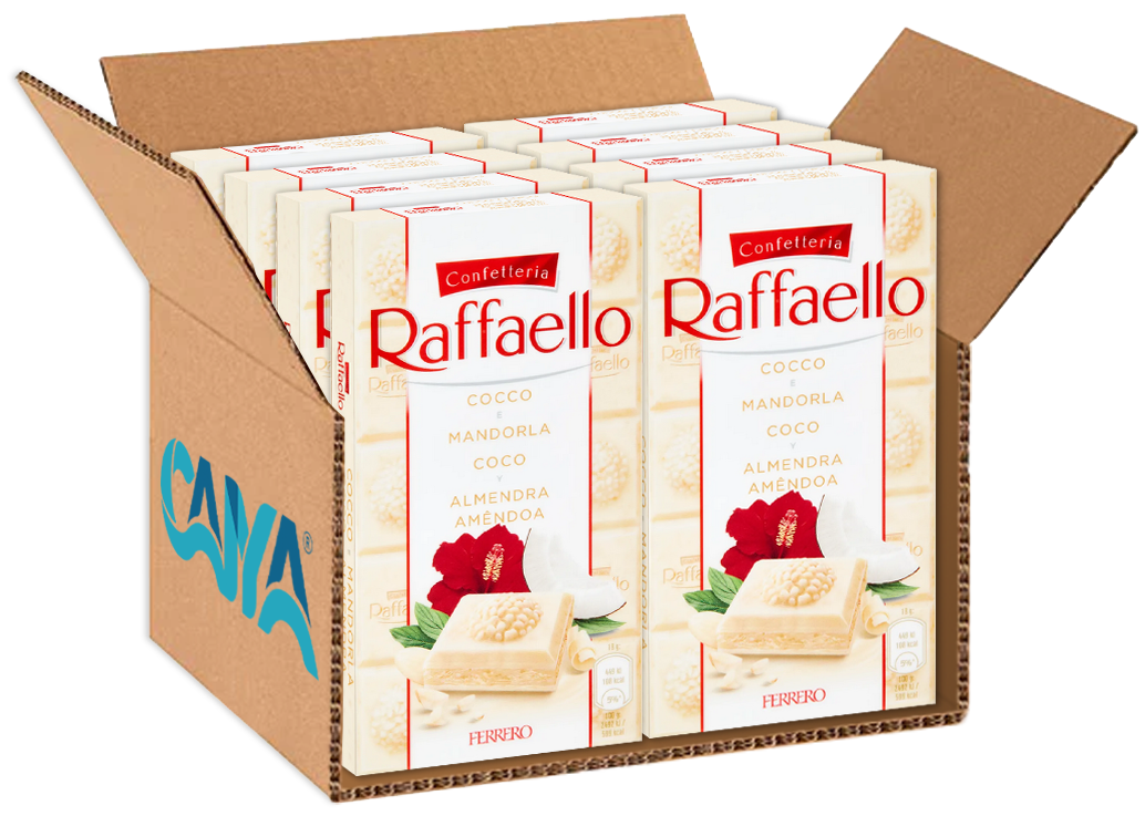 Tipologia | Ferrero Raffaello Tavoletta al Cocco e Mandorla 90g, CAIYA Box con 8 Tavolette |