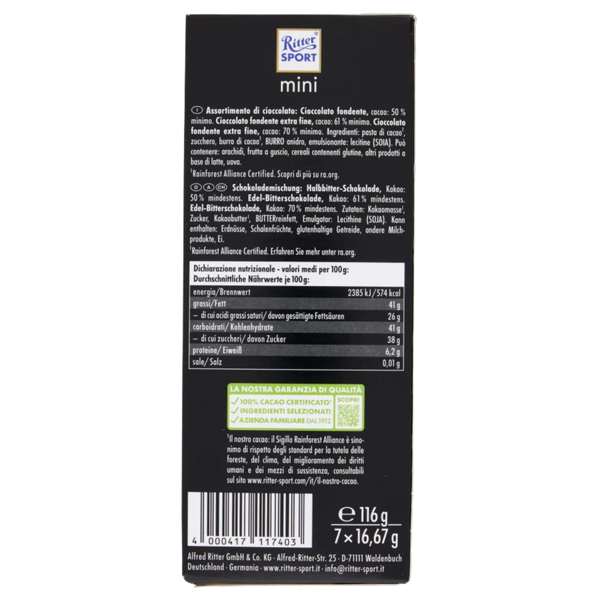 | Tipologia | Ritter Sport Dark Mix Mini Tower 150g, CAIYA Box con 8 Confezioni |