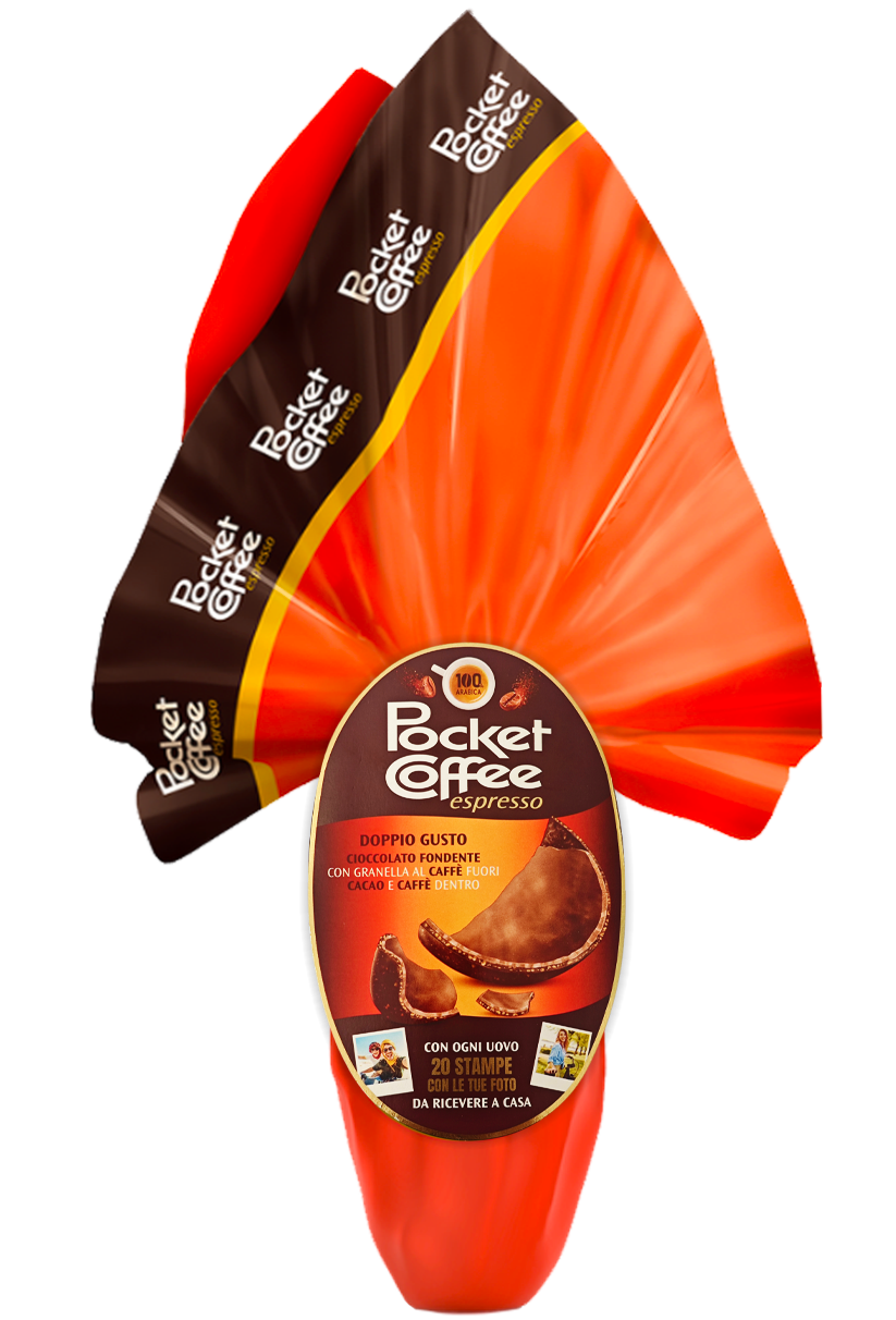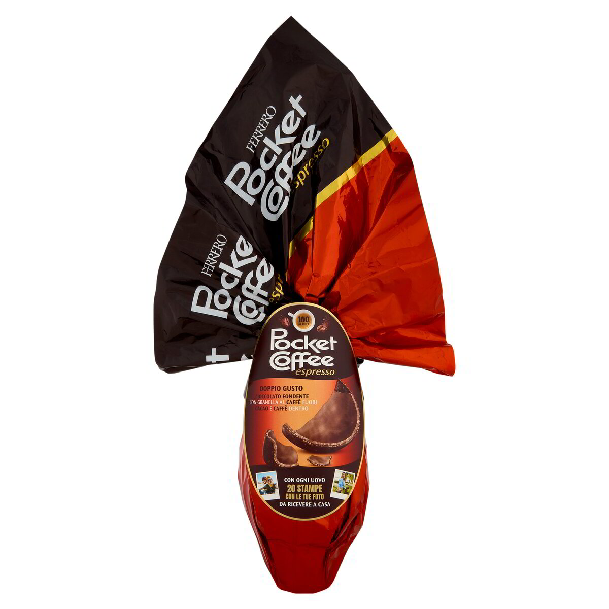 L’Uovo di Pasqua Pocket Coffee Espresso da 250g unisce il gusto intenso del caffè espresso alla qualità del cioccolato fondente. Ricoperto con granella al caffè e con uno strato interno al cacao e caffè, è la scelta perfetta per chi ama i sapori decisi e vuole sorprendere con un dolce pasquale originale firmato Ferrero.