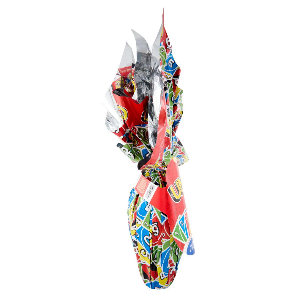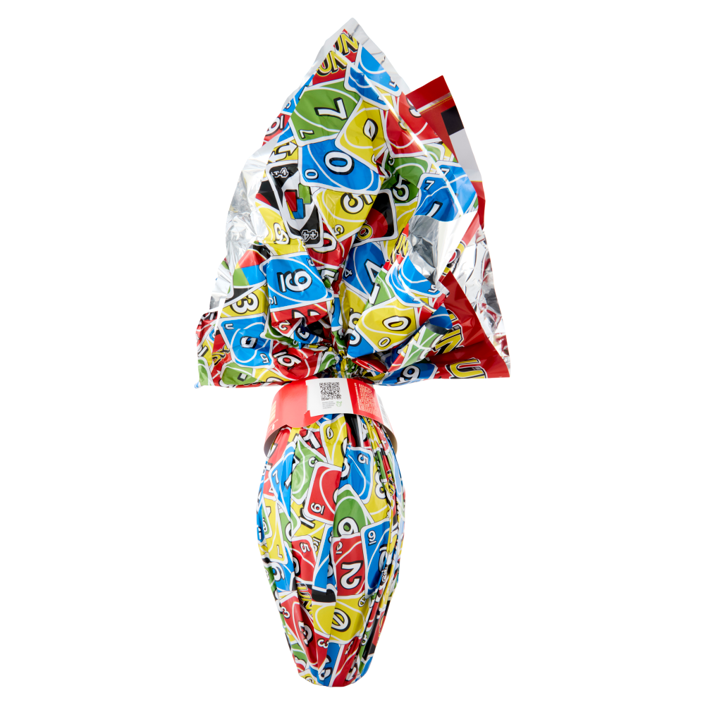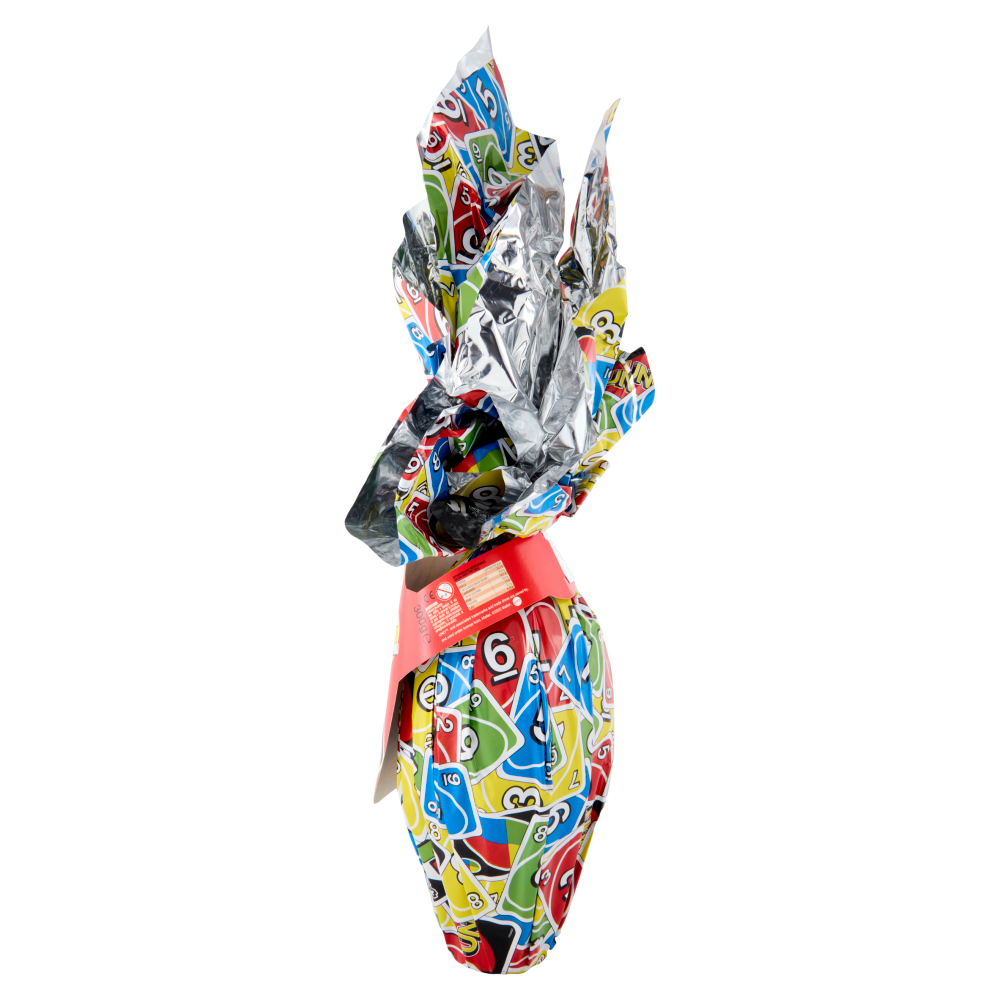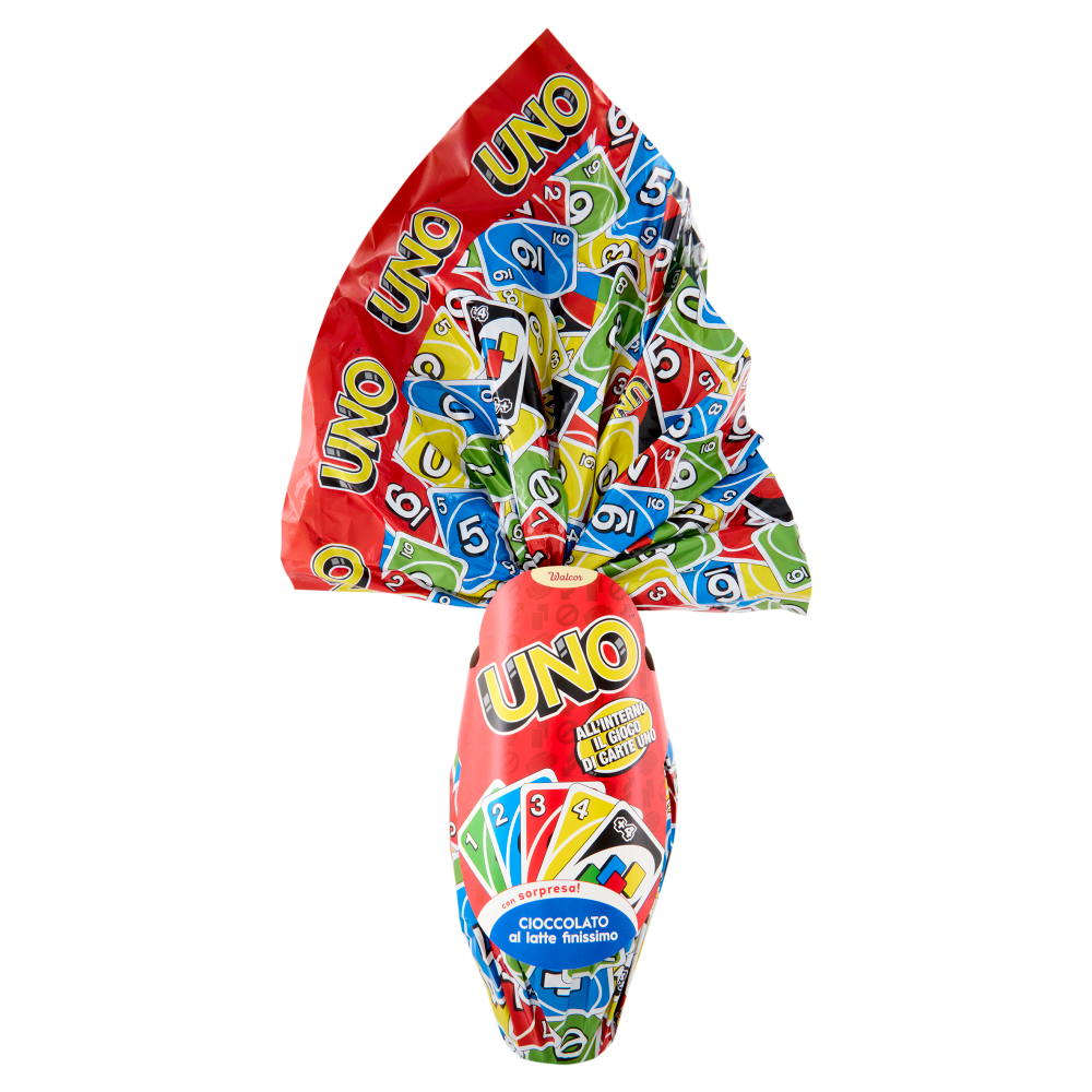 Uovo di Pasqua Walcor da 300g in cioccolato al latte finissimo con sorpresa ufficiale gioco di carte UNO. Un’idea regalo perfetta per bambini e famiglie che unisce dolcezza e divertimento in un’unica confezione.