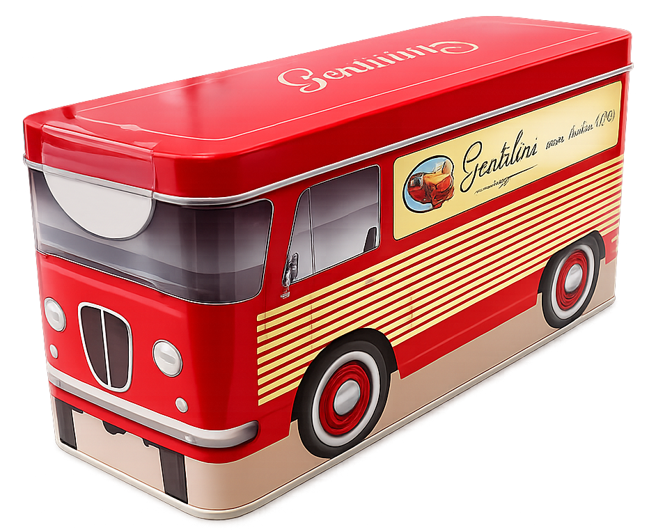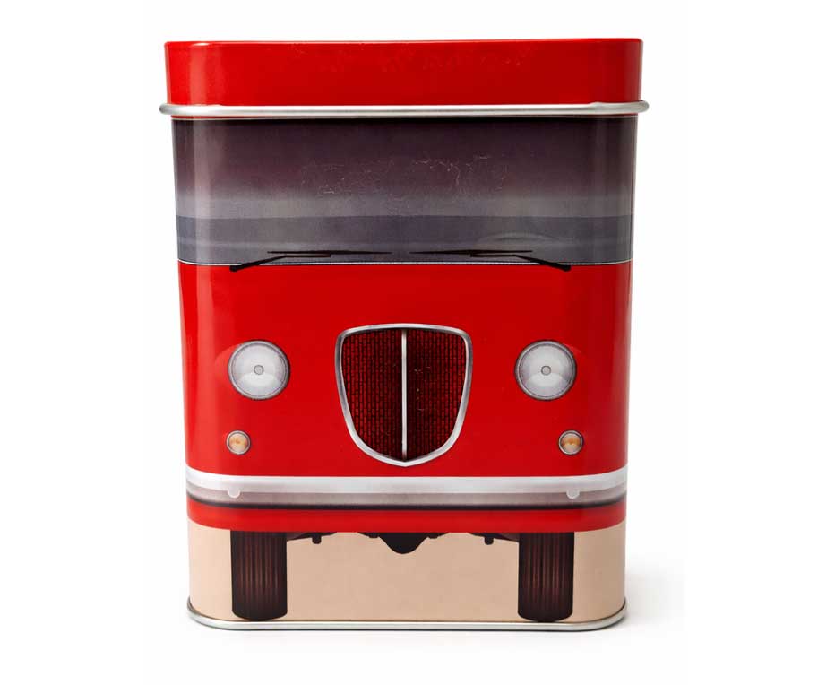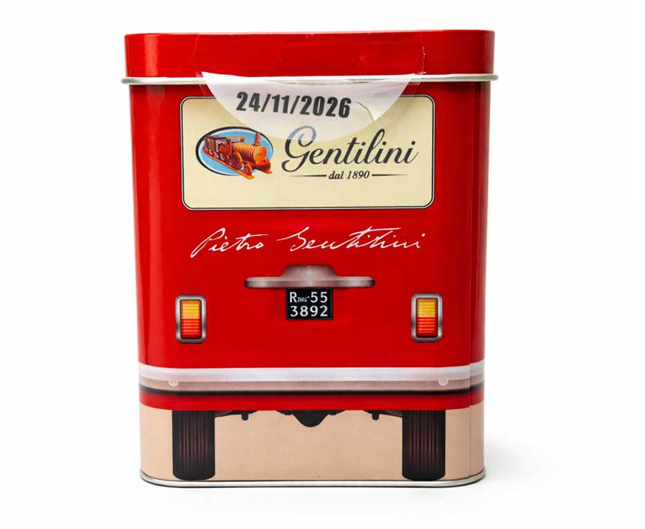 L’iconica confezione in latta, con design ispirato a un camioncino retrò, non è solo pratica ma anche affascinante: un pezzo che aggiunge carattere alla tua cucina e che può diventare un piccolo tesoro da conservare o regalare.