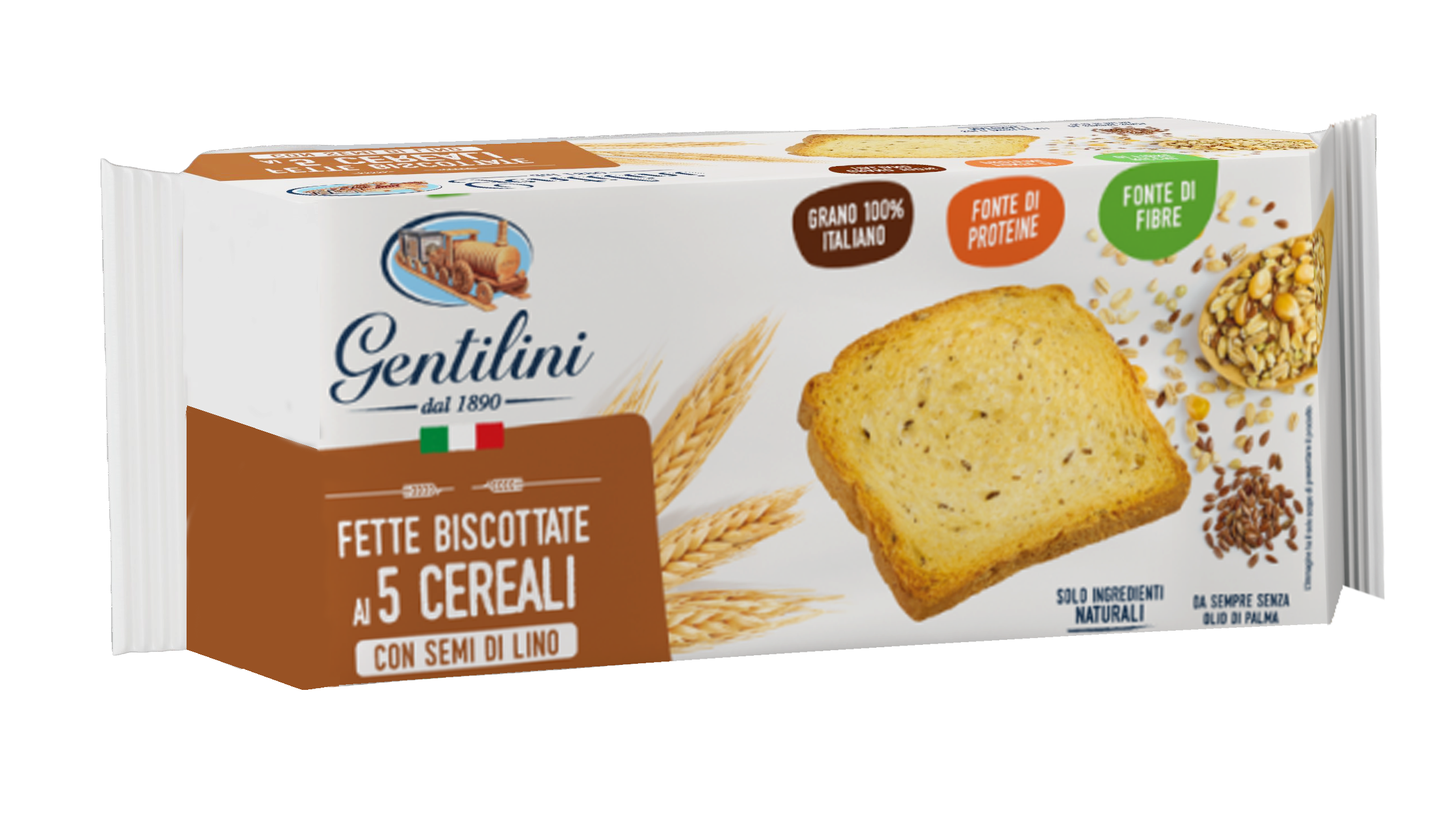 Scopri il gusto autentico delle Fette Biscottate 5 Cereali con Semi di Lino Gentilini, un delizioso snack che unisce la croccantezza alla bontà dei cereali. Ogni fetta è spessa e fragrante, realizzata con un mix selezionato di frumento, avena, mais, orzo e grano saraceno, per offrirti un’esperienza di gusto unica e ricca di nutrienti.