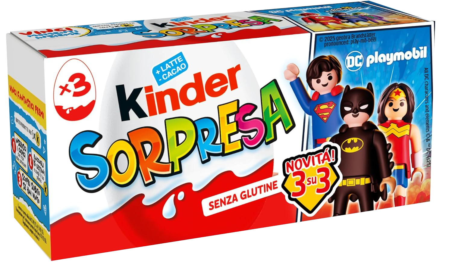 Una nuova avventura ti aspetta con la nuovissima collezione Kinder Sorpresa in collaborazione con DC Playmobil! Gli ovetti più amati di sempre tornano con una serie di personaggi iconici tutti da collezionare. E non è finita qui: grazie all’app Applaydu, ogni sorpresa prende vita in un mondo digitale ricco di giochi e storie. All’interno dei nuovi ovetti Kinder Sorpresa puoi trovare uno dei 16 personaggi esclusivi DC in versione Playmobil. La collezione è disponibile in più formati: ovetto singolo, multipack da 3 unità e multipack da 6 unità.