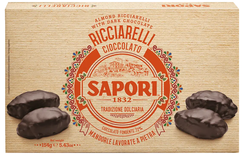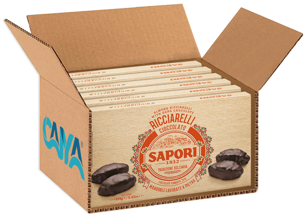 | Tipologia | Sapori Ricciarelli Ricoperti di Cioccolato alle Mandorle Scatola 154g, CAIYA Box con 6 Confezioni |