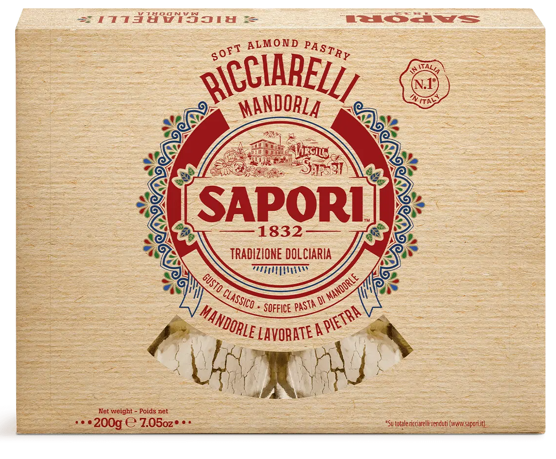 Ogni ricciarello Sapori 1832 racchiude tutta l’esperienza dei nostri mastri Pasticceri: usiamo infatti solo mandorle intere, in un mix di dolci ed amare per esaltarne il gusto, ed ancora oggi le maciniamo lentamente a pietra per rendere la pasta soffice e delicata, pronta per essere ricoperta da un dolce velo di zucchero. I Ricciarelli sono un dolce tipico senese a base di mandorle e zucchero.