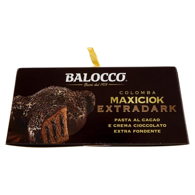 La Balocco Colomba Maxiciok Extradark è la scelta perfetta per chi desidera una Pasqua all’insegna del cioccolato intenso. Questa versione unisce la tradizione della colomba italiana a un impasto al cacao soffice e profumato, arricchito da una generosa crema al cioccolato extra fondente all’80% di cacao. Ogni fetta sprigiona note profonde e avvolgenti, grazie all’equilibrio tra morbidezza e intensità. La copertura completa l’esperienza con una consistenza piacevolmente strutturata che esalta il contrasto tra impasto e crema. Ideale per chi non ama i canditi e preferisce un gusto più deciso, è perfetta da condividere durante il pranzo pasquale o da regalare come proposta gourmet raffinata. Con il suo formato da 750g è adatta alla famiglia e agli amanti del vero fondente. Una colomba pensata per chi vuole distinguersi, portando in tavola un dolce pasquale moderno, elegante e ricco di carattere.
