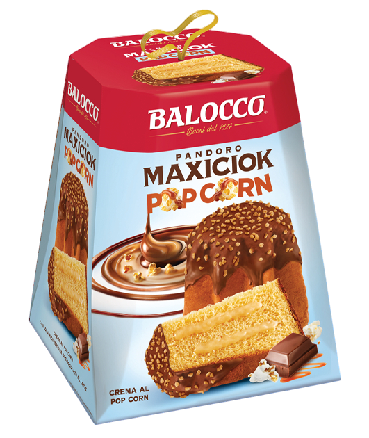 Scopri il Pandoro Maxiciok Popcorn di Balocco, una deliziosa interpretazione del classico dolce natalizio italiano dal 1927. Questo pandoro da 800g presenta un’innovativa combinazione di sapori che unisce la soffice consistenza tradizionale del pandoro con una golosa crema al popcorn e una lussuosa copertura di cioccolato al latte. La superficie è impreziosita da croccanti granelle che aggiungono una piacevole texture al dolce. Ogni fetta rivela strati di morbido pandoro intervallati da una cremosa farcitura al popcorn, creando un’esperienza gustativa unica che combina la tradizione pasticcera italiana con un tocco di originalità contemporanea. La confezione elegante con il caratteristico nastro dorato lo rende perfetto come regalo durante le festività o per rendere speciale qualsiasi momento di condivisione.