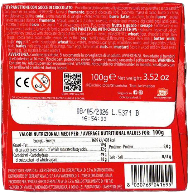 | Tipologia | Dolci Preziosi Mini Panettone ONE PIECE con Gocce di Cioccolato 100g, CAIYA Box con 6 Confezioni |