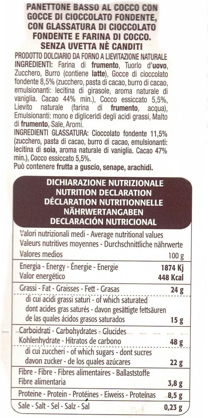 Pancioc al Cocco di Giampaoli è un panettone basso e morbido arricchito con deliziose gocce di cioccolato fondente e la dolcezza del cocco. Questo panettone di qualità tipica è preparato con ingredienti selezionati come burro, uova fresche e lievito naturale per un’esperienza di gusto autentica. Il peso di 1 kg lo rende ideale per condividere con la famiglia e gli amici durante le feste. Assaporane la morbidezza ad ogni morso.