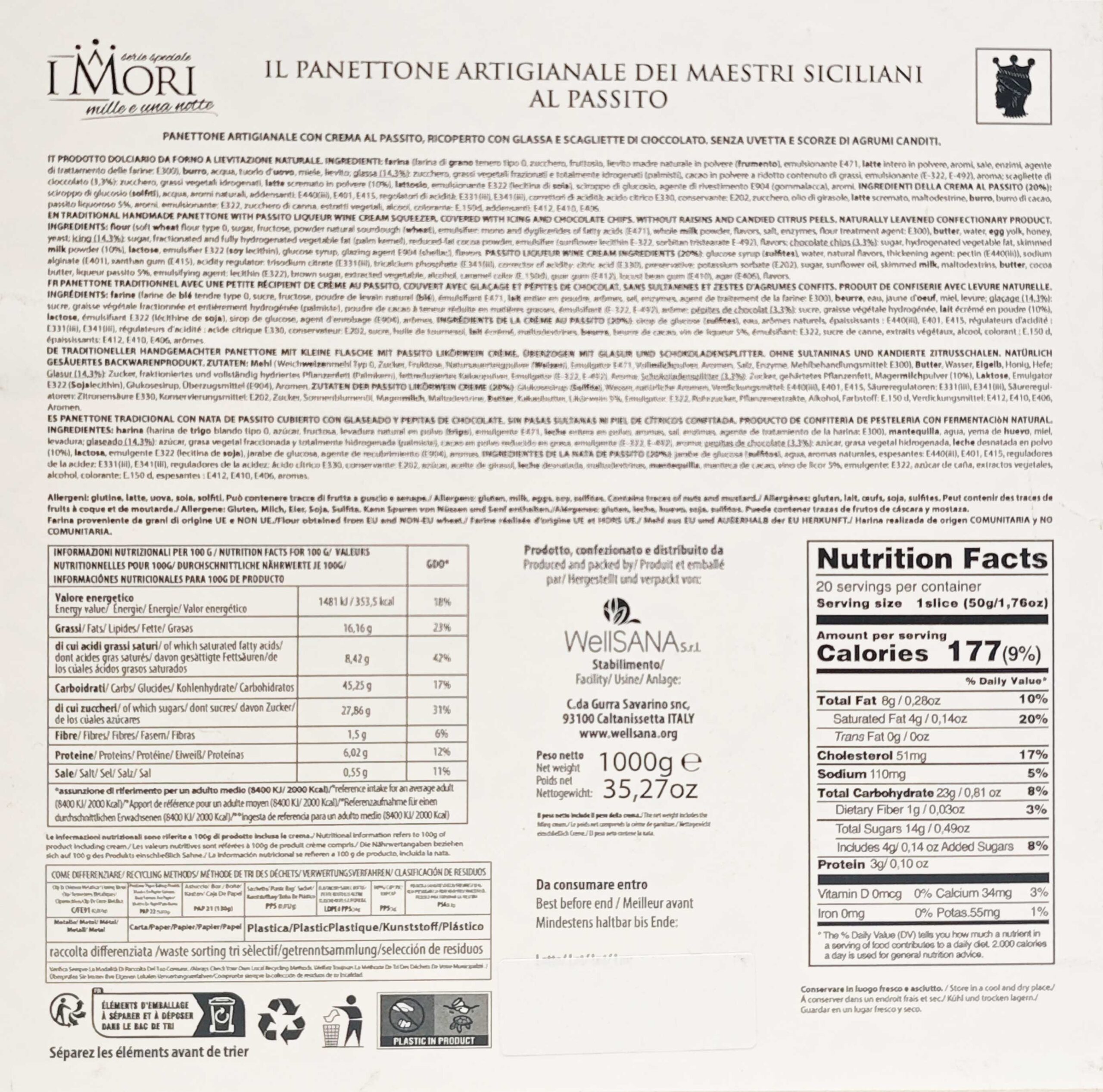 Scopri il lusso gastronomico con il Panettone Artigianale al Passito de I Mori, un capolavoro della tradizione dolciaria siciliana. Questo raffinato dolce da 1kg è ricoperto con una deliziosa glassa e impreziosito da scagliette di cioccolato, offrendo un’esperienza gustativa unica senza l’aggiunta di uvetta e canditi. La confezione include un prezioso vasetto di crema al Passito che esalta ulteriormente il sapore del panettone. Realizzato con ingredienti selezionati e attraverso un processo di lievitazione naturale, questo prodotto rappresenta l’eccellenza dell’arte pasticcera siciliana. Presentato in un’elegante confezione blu, è l’ideale per celebrare occasioni speciali o per un regalo raffinato che sorprenderà anche i palati più esigenti. Ogni fetta rivela la morbidezza dell’impasto e il delicato equilibrio di sapori che solo un prodotto artigianale può offrire.