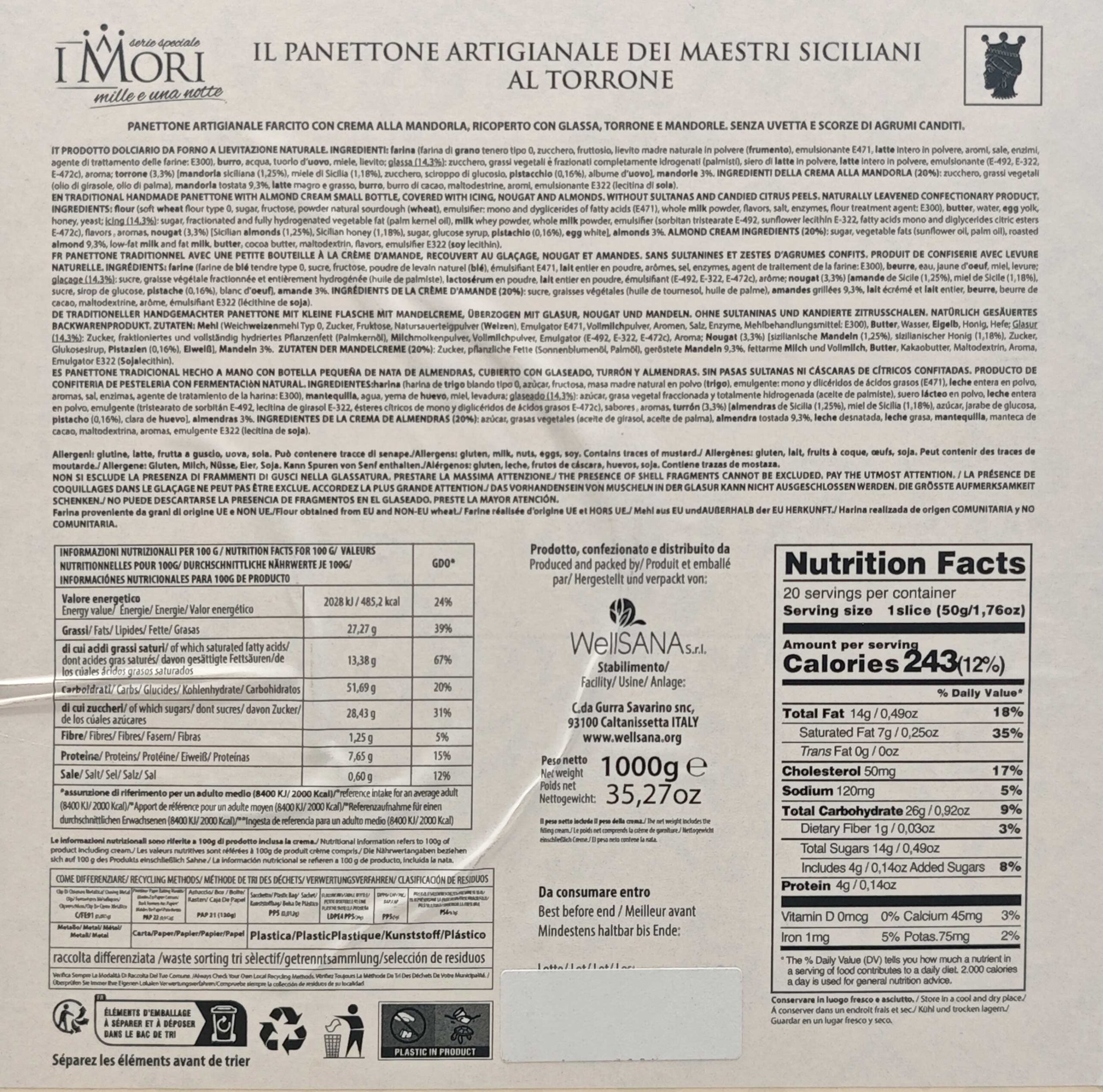 Il Panettone Artigianale al Torrone I Mori è una deliziosa creazione dei maestri pasticceri siciliani. Questo raffinato dolce da 1kg è farcito con una squisita crema alla mandorla e ricoperto con glassa, torrone e mandorle. La particolarità di questo panettone è l’assenza di uvetta e scorze di agrumi canditi, perfetto per chi preferisce un gusto più delicato. Realizzato attraverso un processo di lievitazione naturale, questo prodotto artigianale combina la morbidezza del panettone tradizionale con il gusto ricco del torrone. Viene presentato in un’elegante confezione viola che include anche un vasetto di crema al torrone, ideale per accompagnare ogni fetta. Con 20 porzioni per confezione, questo panettone è perfetto per celebrare le festività o come regalo speciale. Conservare in luogo fresco e asciutto per mantenere intatta la sua fragranza e il suo sapore unico.