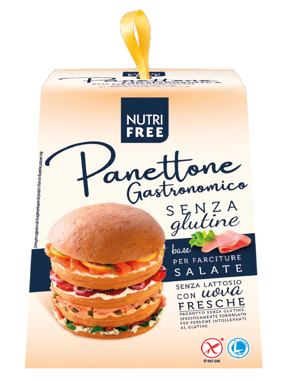 Scopri il Panettone Gastronomico Nutri Free, una base salata senza glutine e senza lattosio perfetta per le tue farciture creative. Questo prodotto da 400g è specificamente formulato per le persone intolleranti al glutine, con l’aggiunta di uova fresche per una consistenza soffice e gustosa. Ideale per preparare deliziosi sandwich multistrato con i tuoi ingredienti preferiti come salumi, formaggi, verdure e salse.